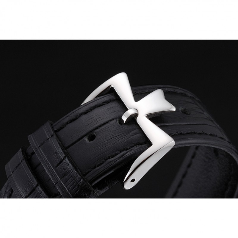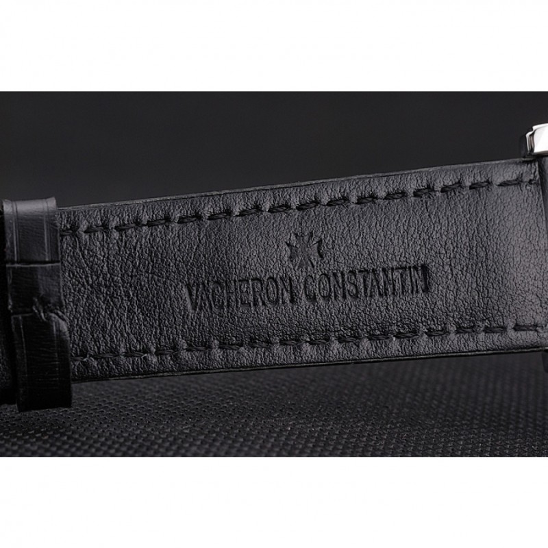 pulsera: logotipo y correa de piel Vacheron Constantin calor en relieve de cocodrilo negro con el logotipo de acero inoxidable pulido tallado gancho hebilla de cierre