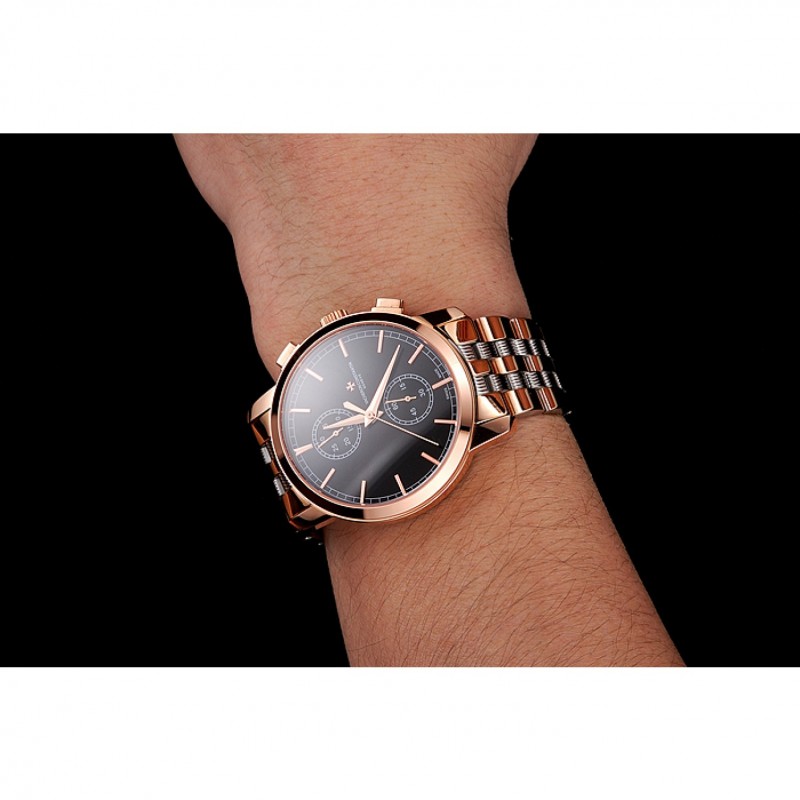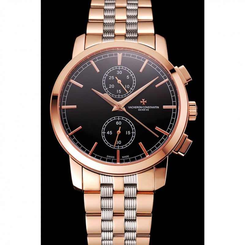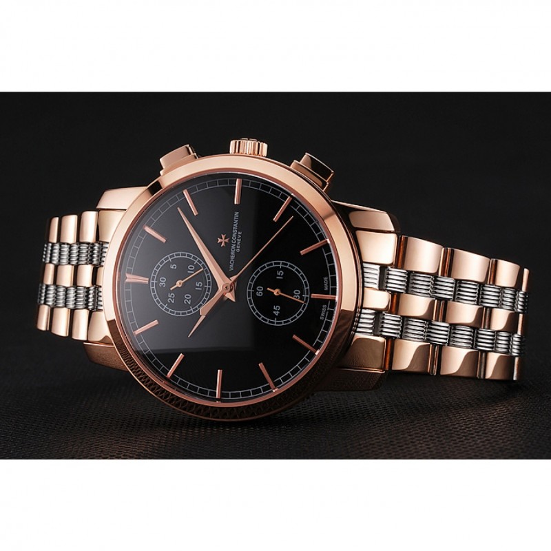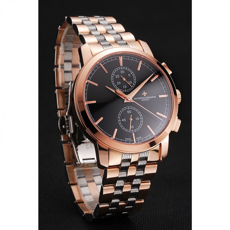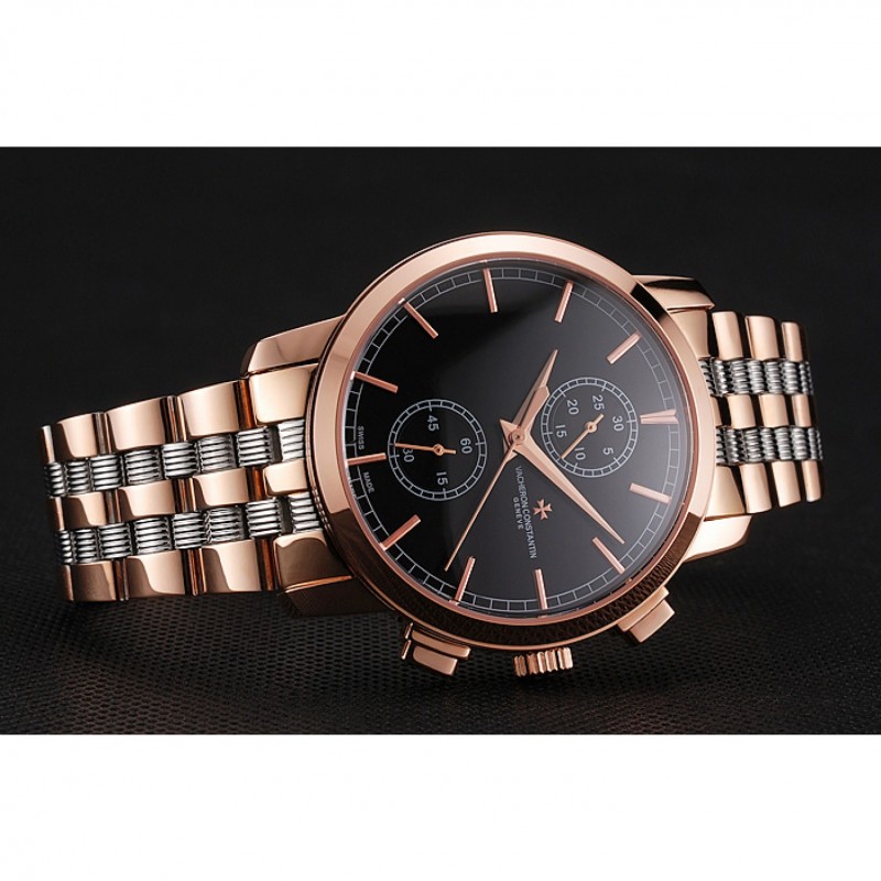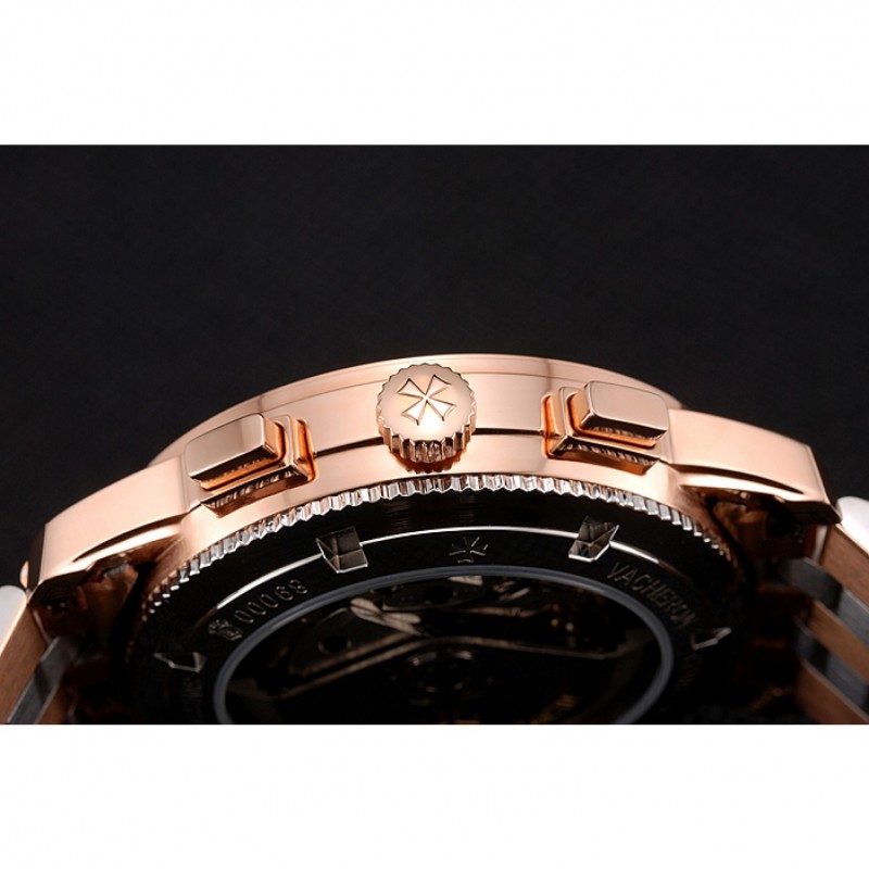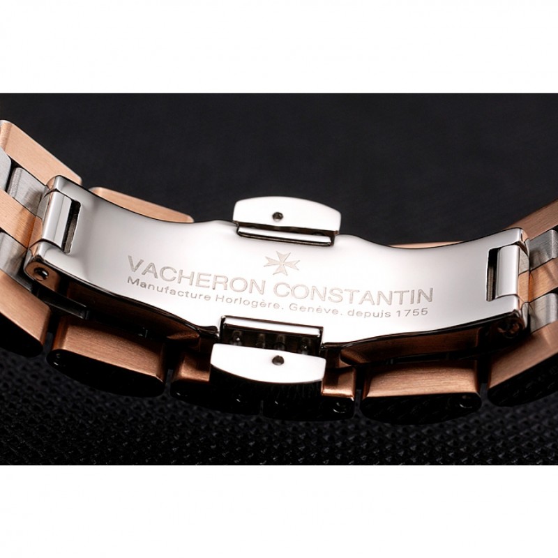Corona: logotipo de Vacheron Constantin grabado 18k Rose- chapado en oro corona cutwork con un rectangular corona de botón en cada lado de ella