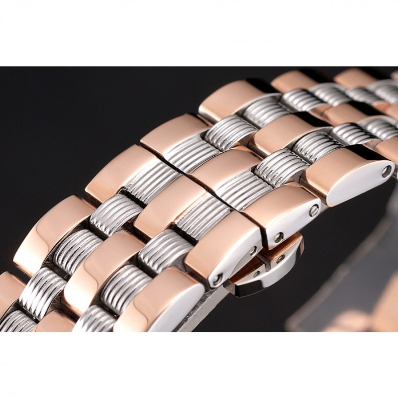 pulsera: dos tonos de 18K rose-chapado en oro y pulido acero brazalete de eslabones de calado inoxidable con acero inoxidable pulido de liberación empuje del corchete