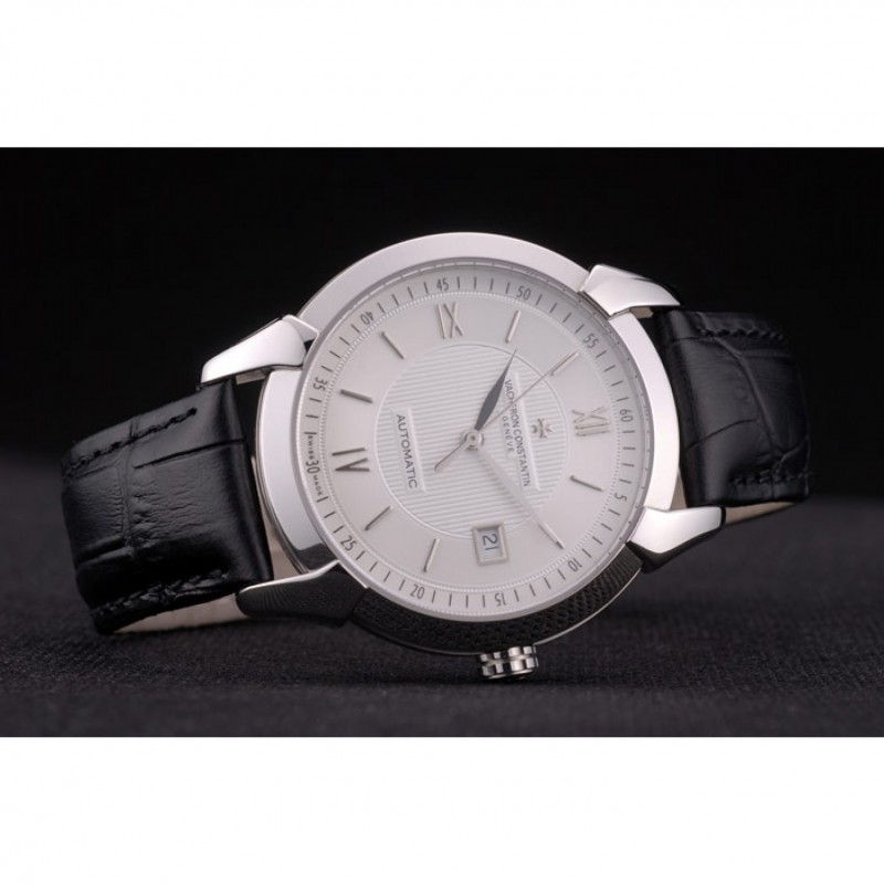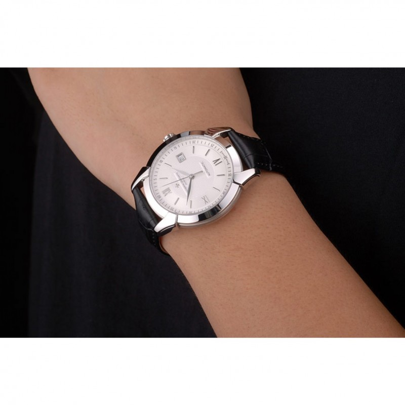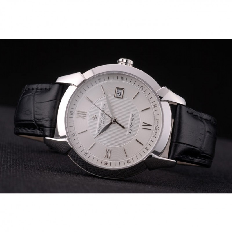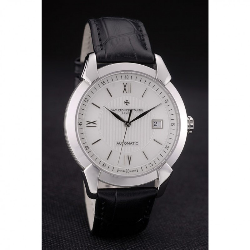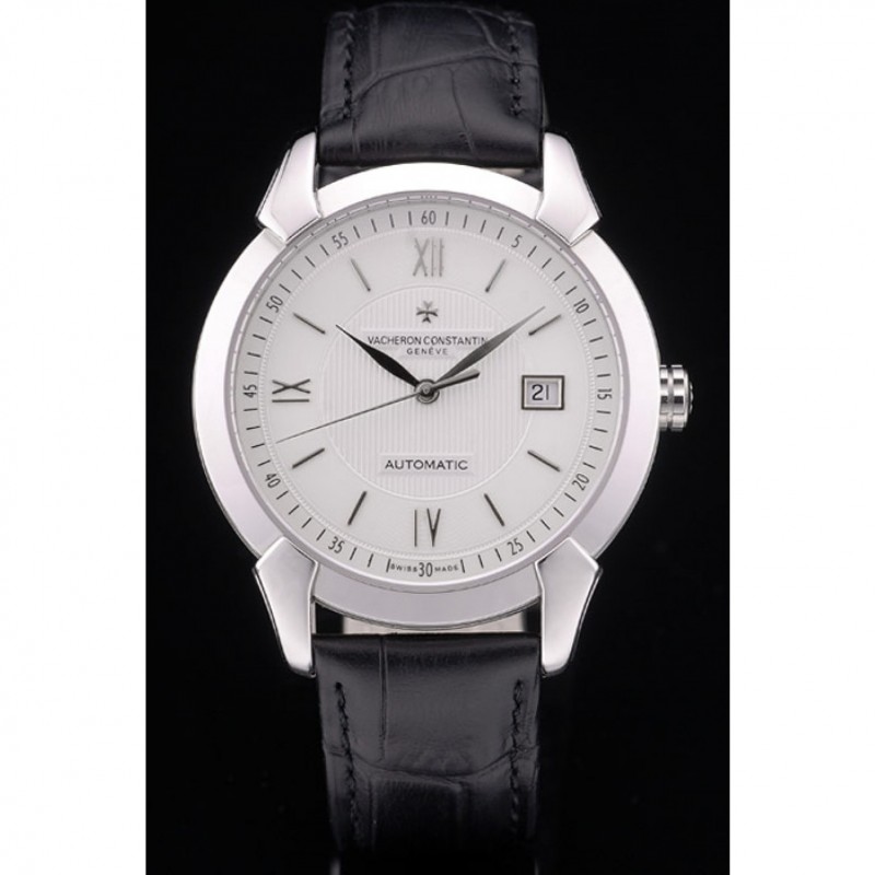 pulsera: El calor en relieve Vacheron Constantin y correa de piel de cocodrilo negro logotipo con pulido logotipo de acero inoxidable gancho hebilla de cierre