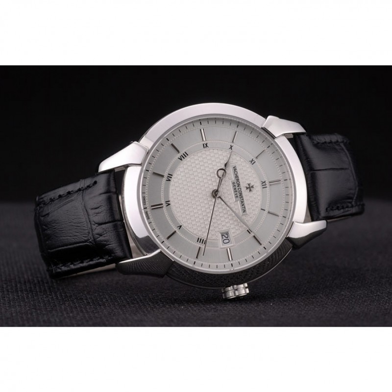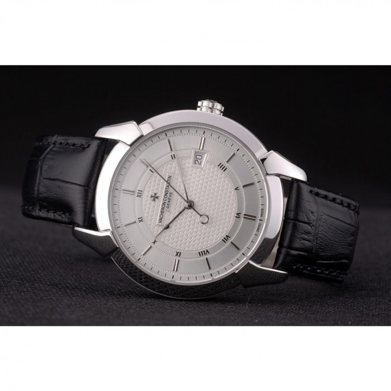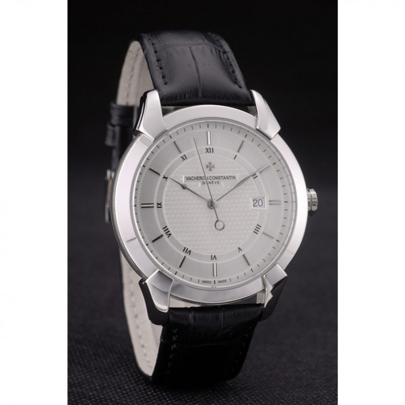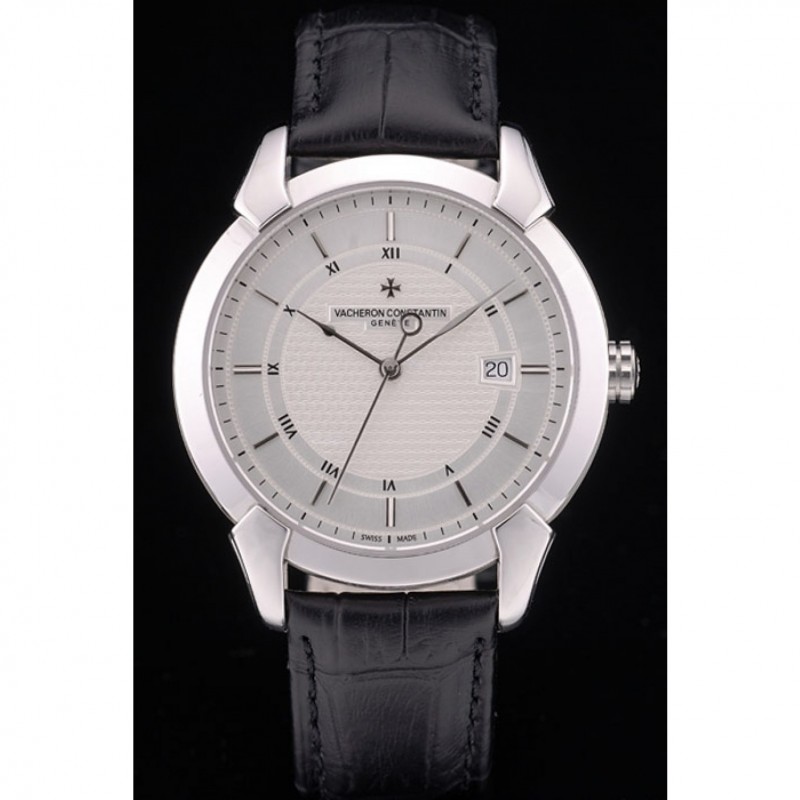 Inicio / Vacheron Constantin / Suiza Vacheron Constantin Tradicional Blanco Dial pulsera de cuero de los números romanos Negro