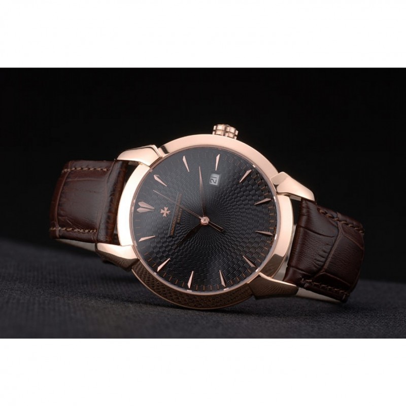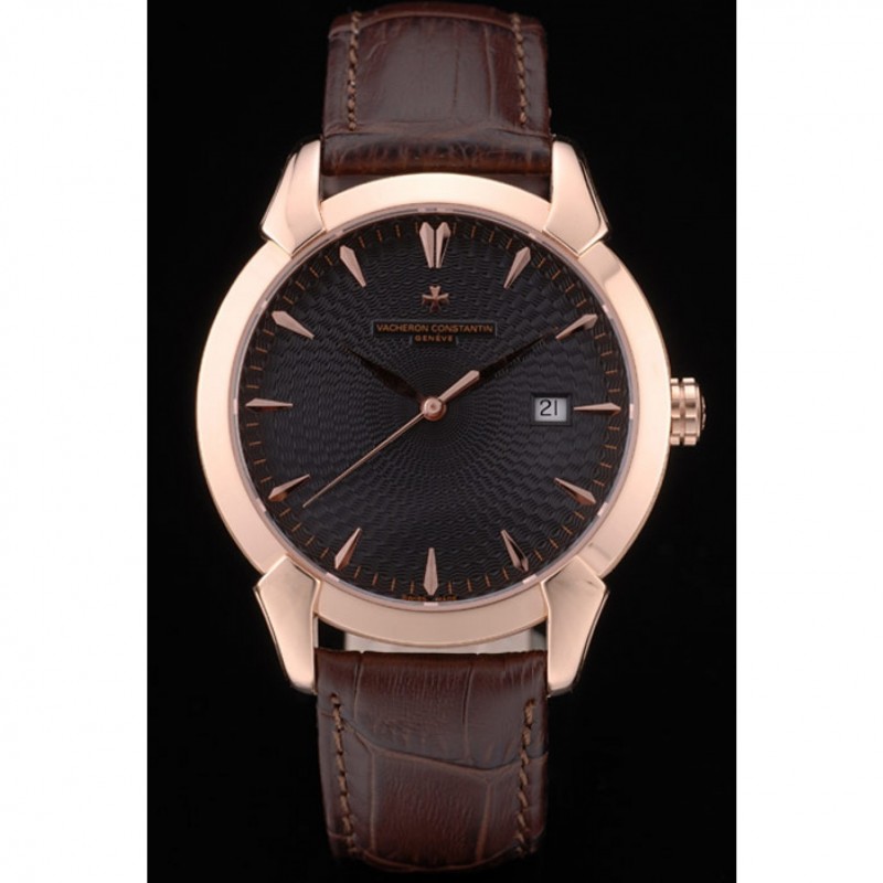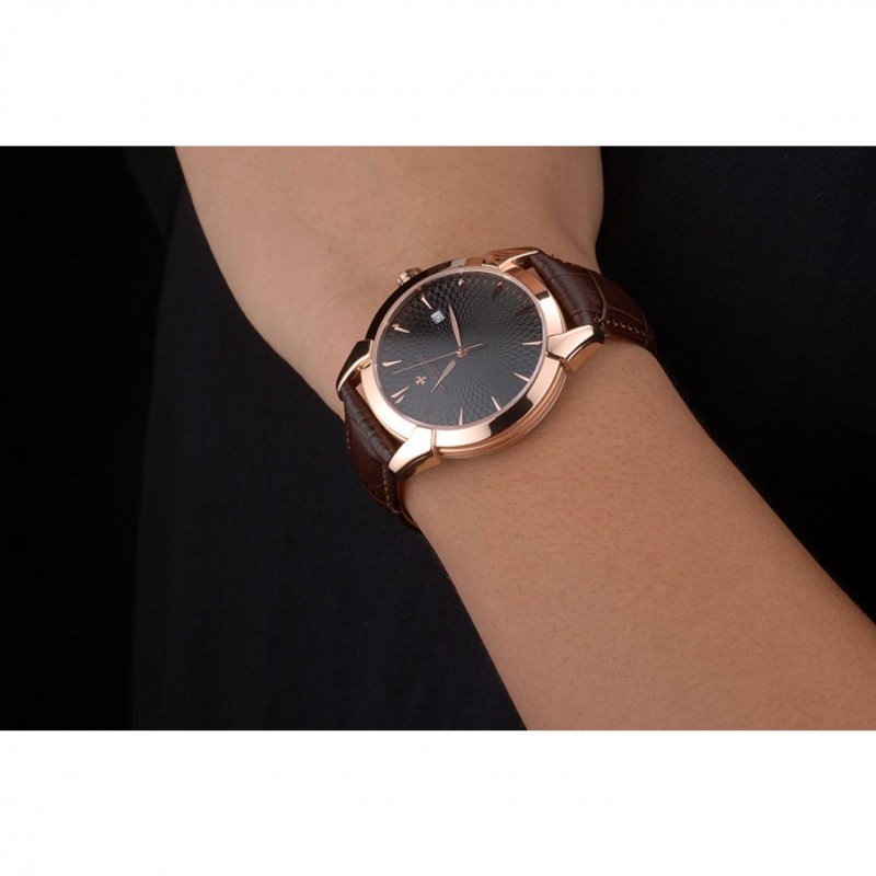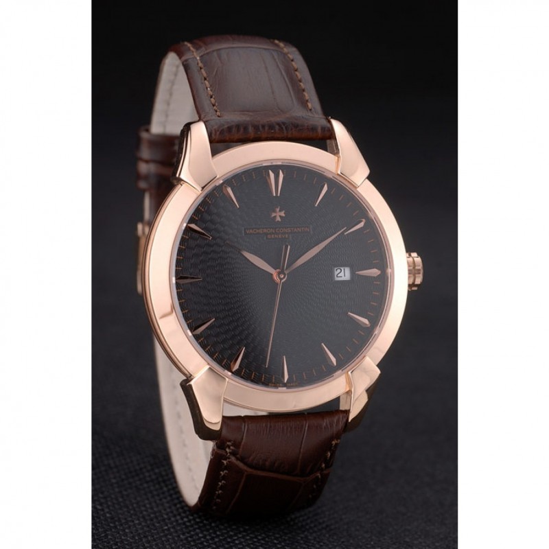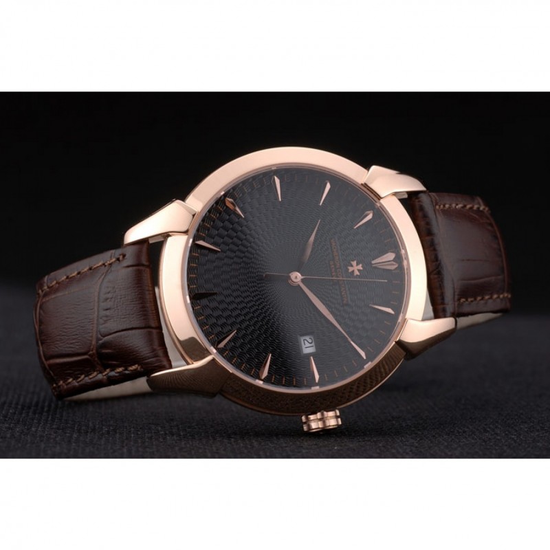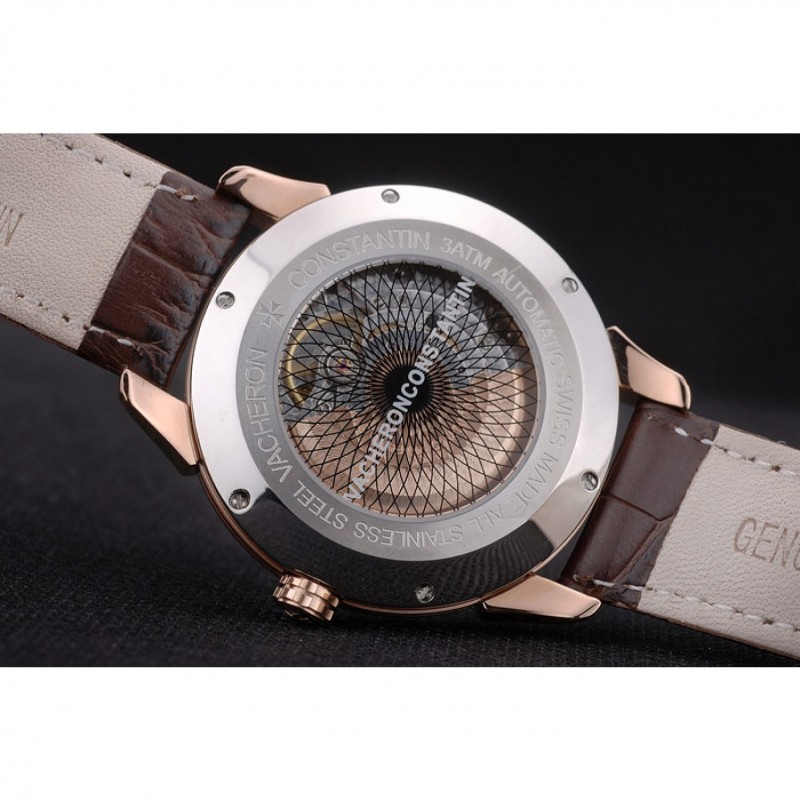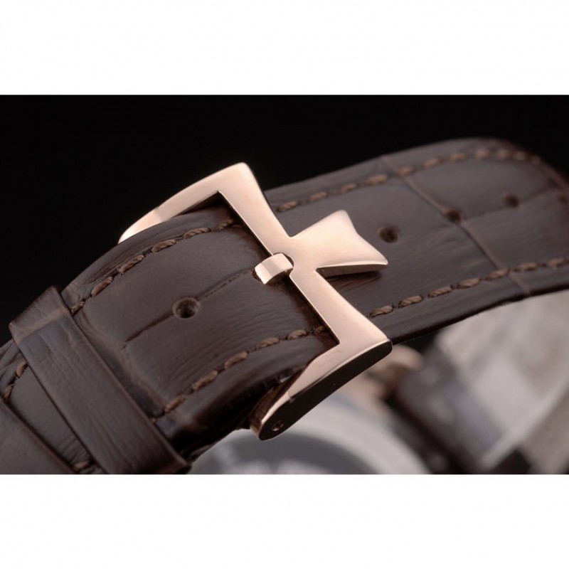 pulsera: El calor en relieve Vacheron Constantin y el logotipo de la correa de piel de cocodrilo marrón con rosa de 18 quilates chapado en oro logotipo de gancho hebilla de cierre