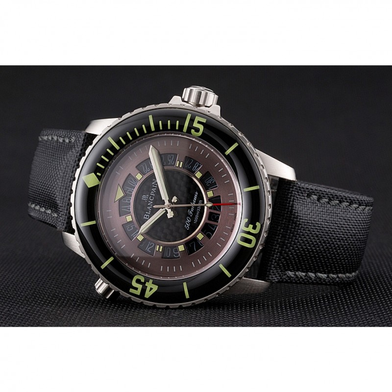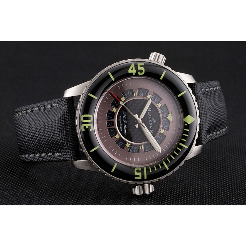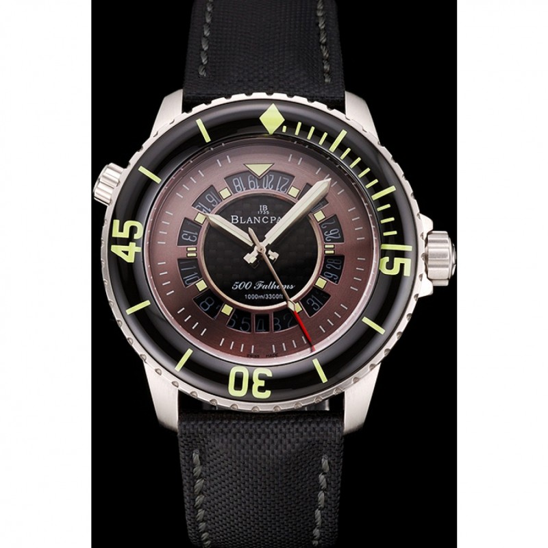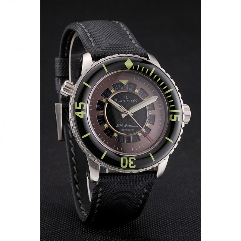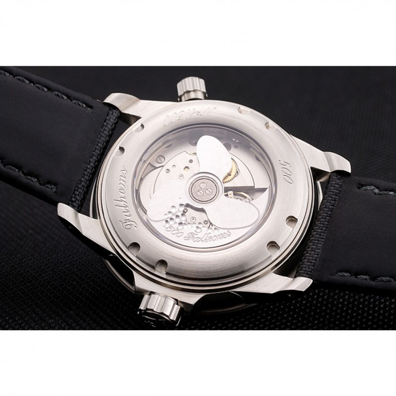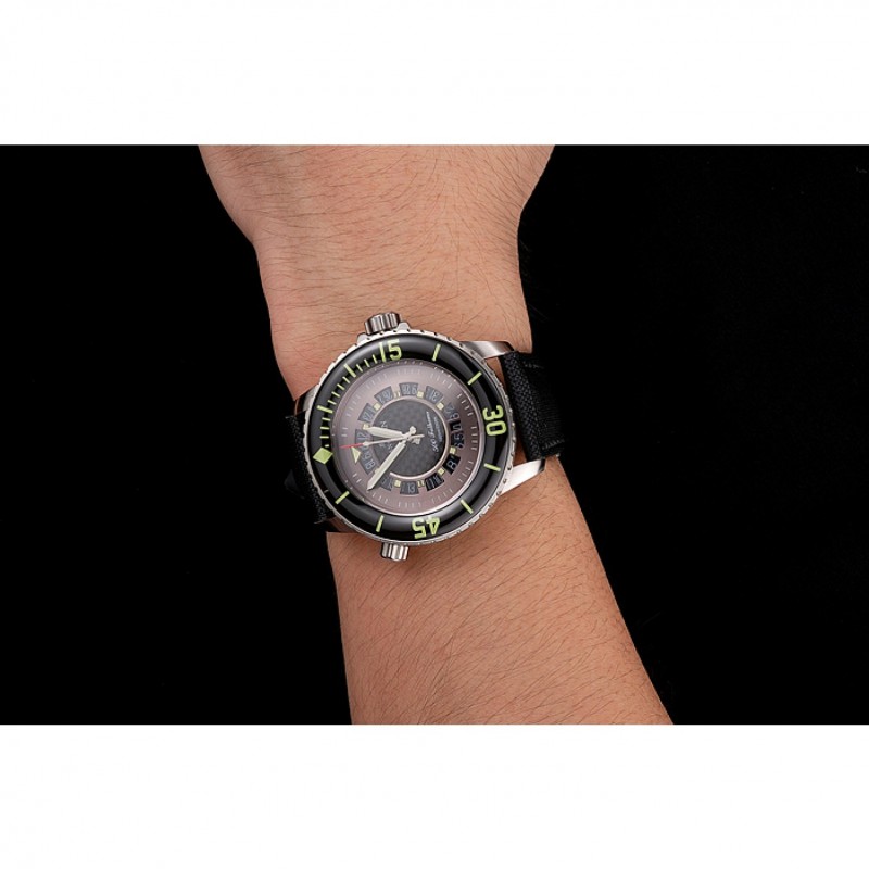 pulsera: Logo y correa de cuero negro en relieve calor Blancpain con Blancpain grabado de acero inoxidable pulido de gancho hebilla de cierre