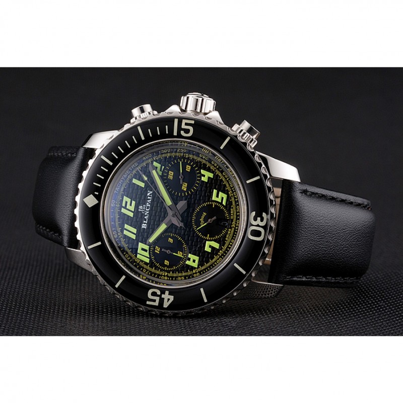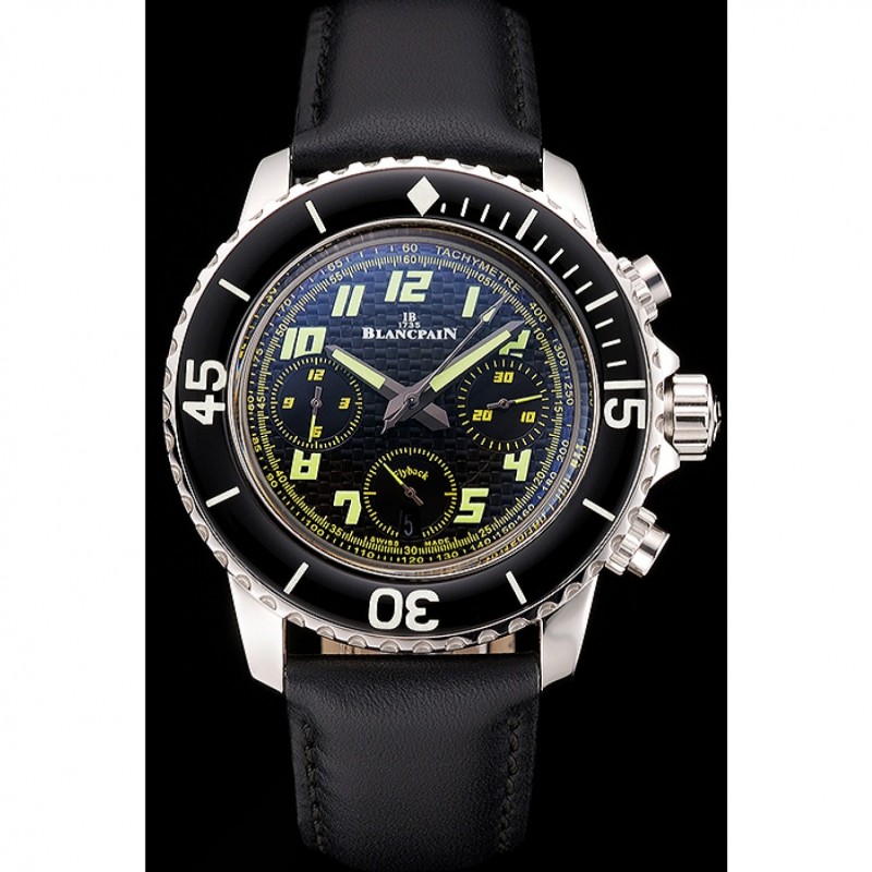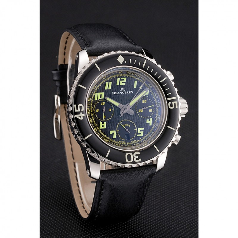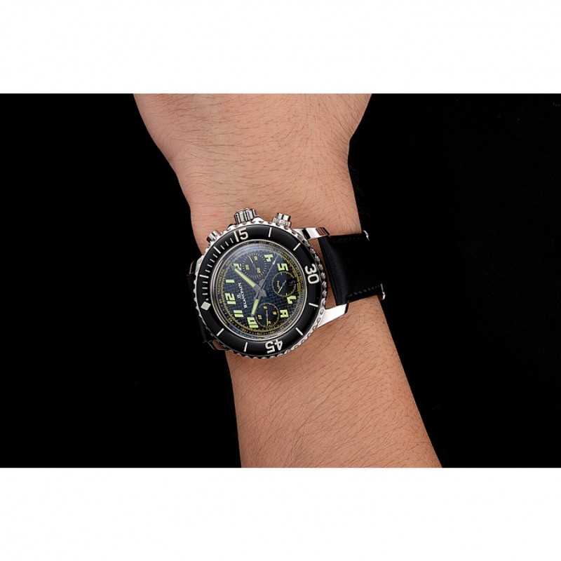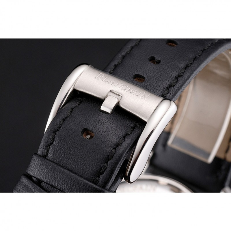pulsera: Logo y correa de cuero negro en relieve calor Blancpain con Blancpain grabado de acero inoxidable pulido de gancho hebilla de cierre
