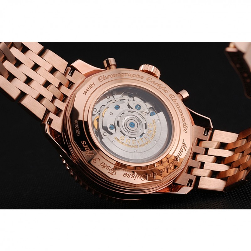 Volver: 18k de oro rosa plateado complemento de vuelta con transparentes mecánica-revelando atrás y grabados Breitling