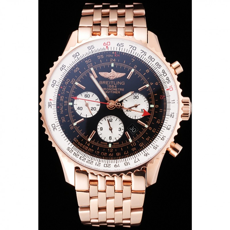 Inicio / Breitling / Navitimer / Suizo Breitling Navitimer Dial Negro Caja de oro rosa y pulsera