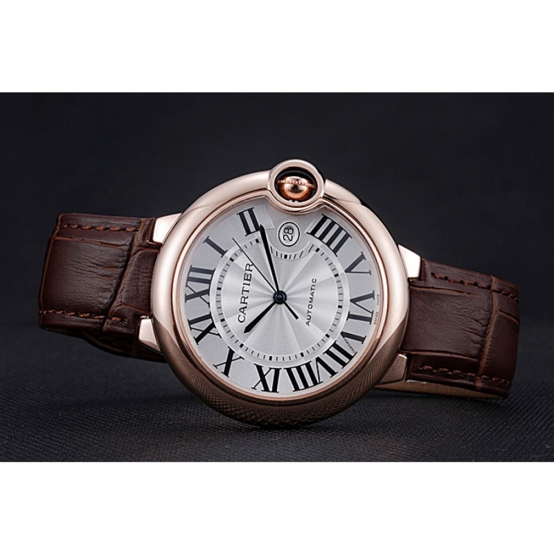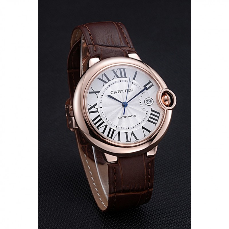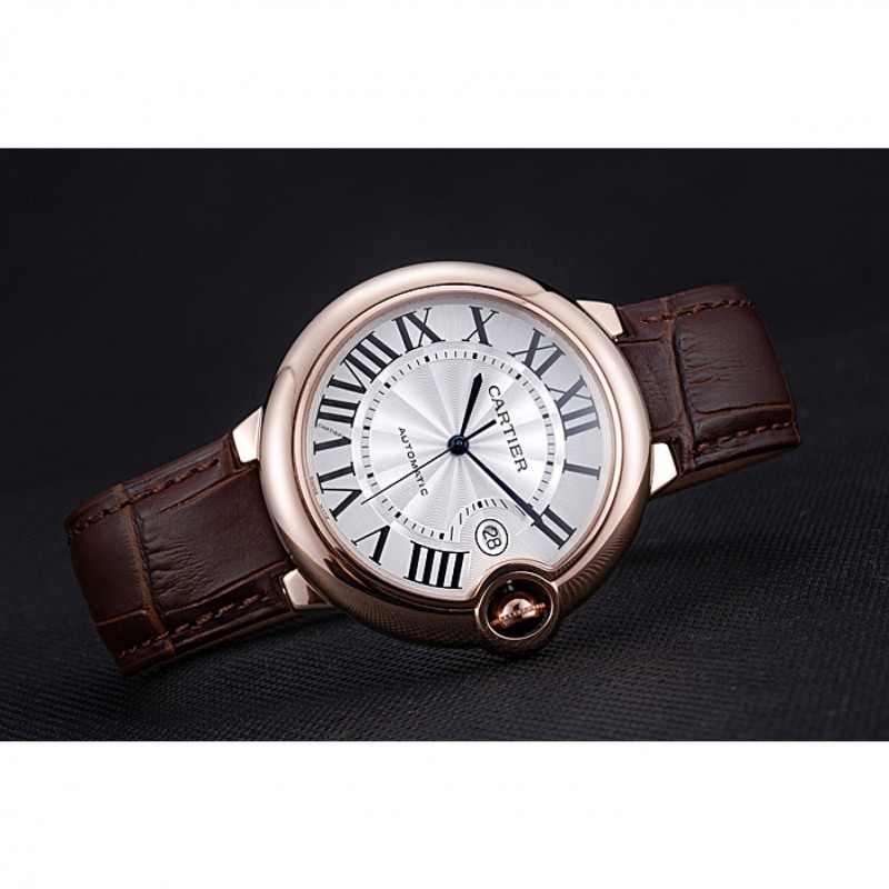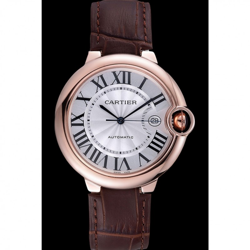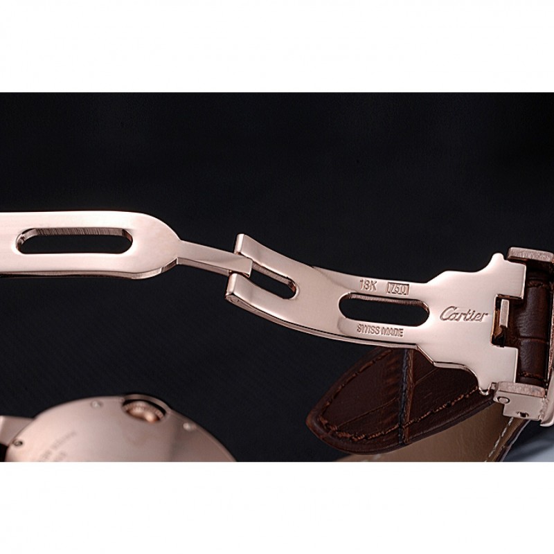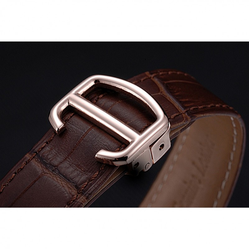 pulsera: plateado en relieve correa de piel de cocodrilo marrón calor Cartier rosa de 18 quilates-oro plegable en cierre de gancho