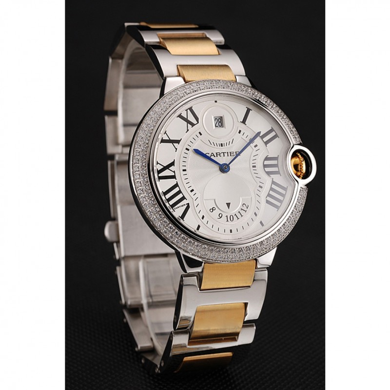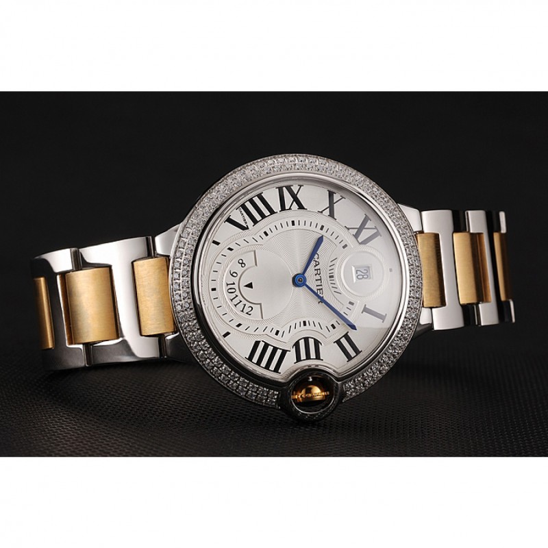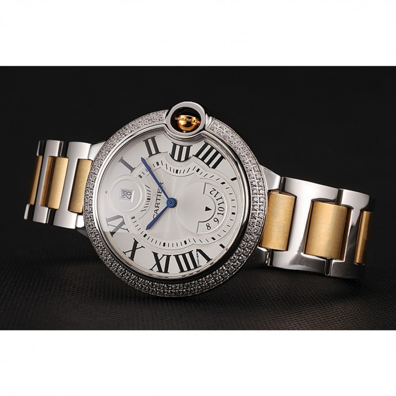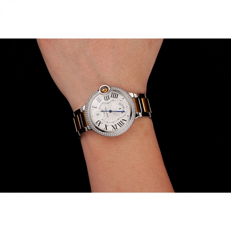 Inicio / Cartier / Suizo Cartier Ballon Bleu Dos Hora esfera blanca diamante caso del oro y de plata de la pulsera 1453876