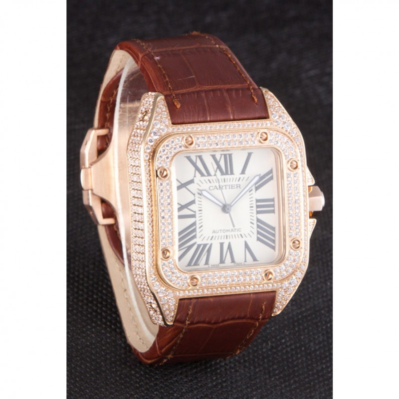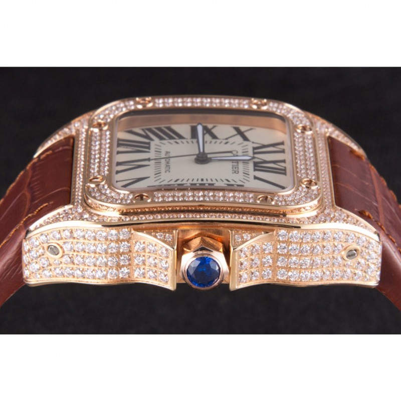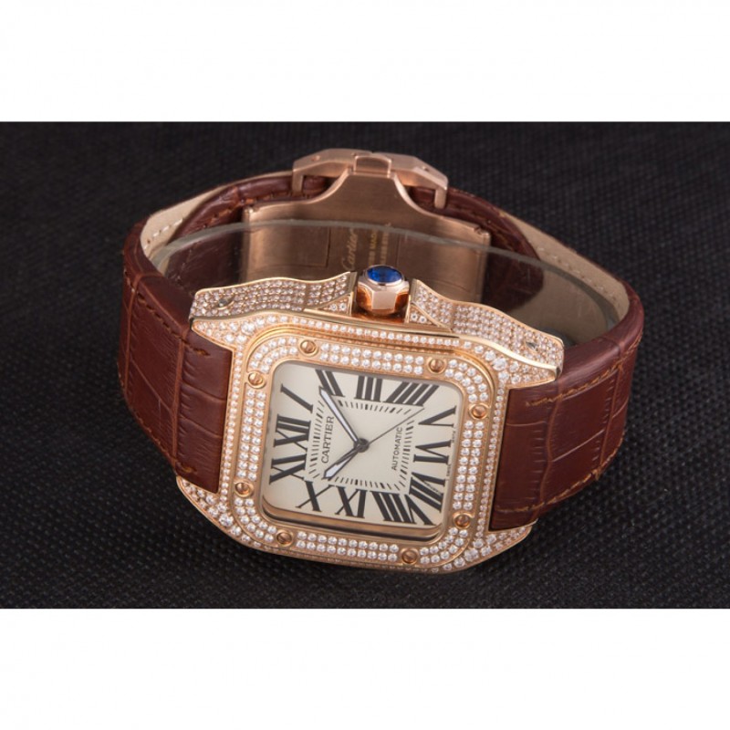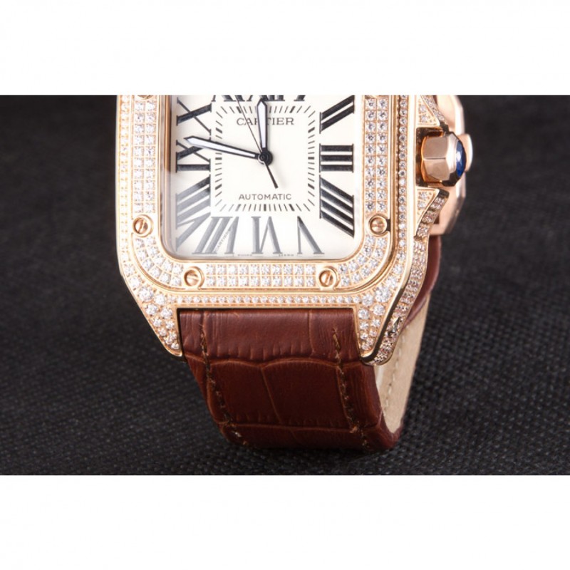Inicio / Cartier / Suizo Cartier Santos de oro rosa Bisel con Diamantes y Correa de cuero marrón sct46 621530
