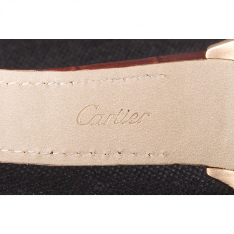 pulsera: calor Cartier correa de piel de cocodrilo marrón en relieve con 18K rose-chapado en oro liberación corchete empuje