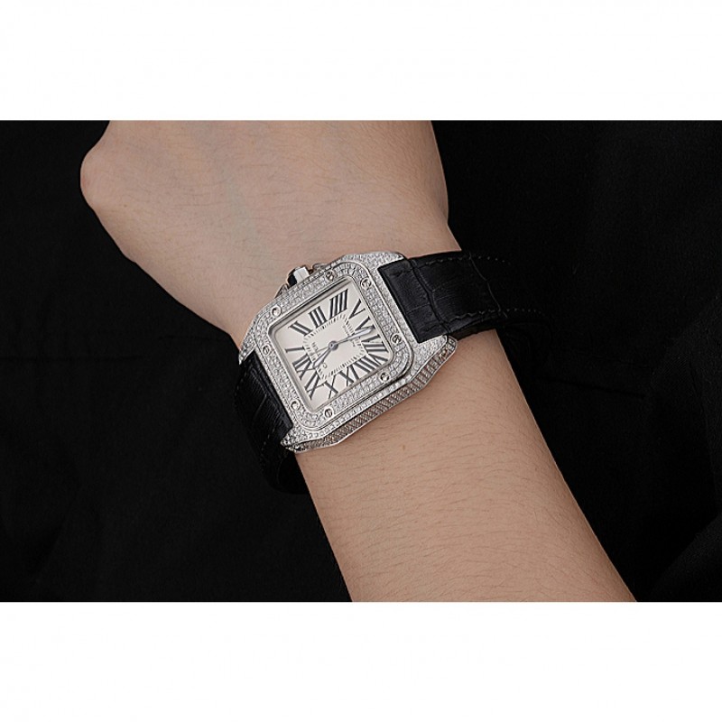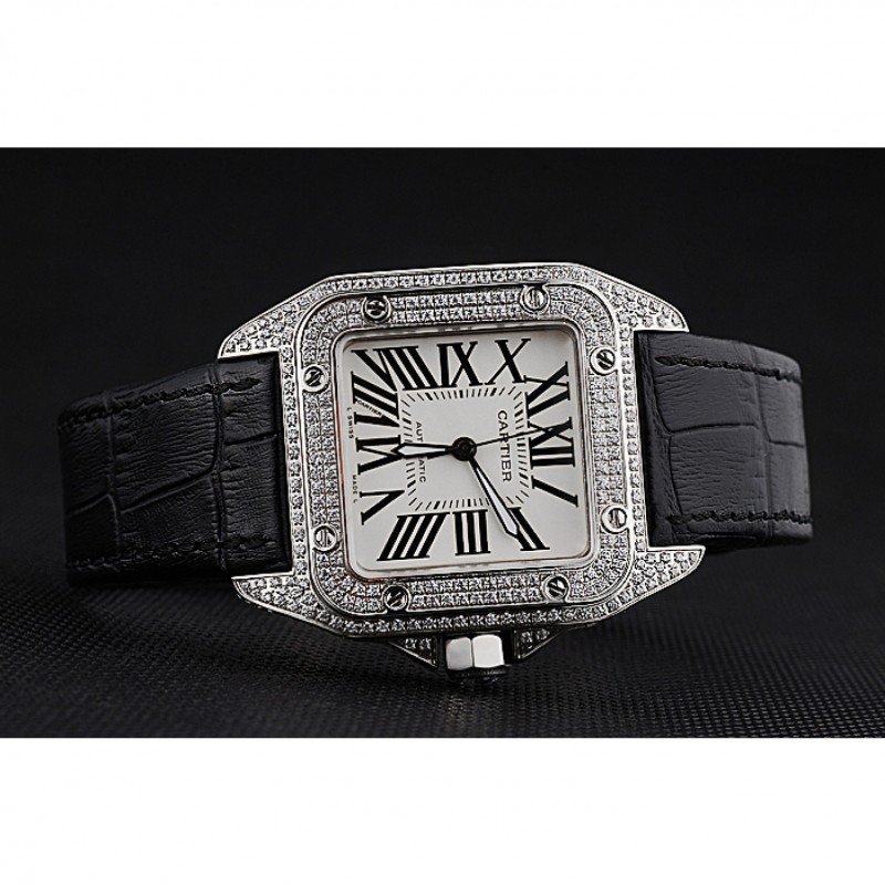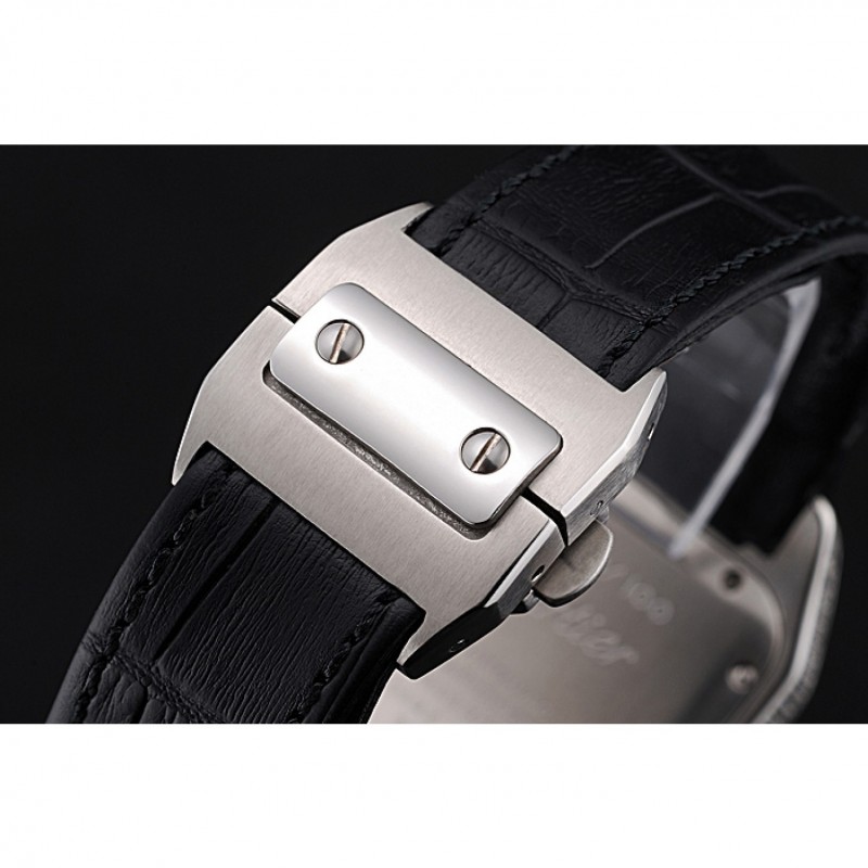 pulsera: correa de piel de cocodrilo negro Cartier y código de producto de calor en relieve con acero inoxidable cepillado de liberación empuje corchete