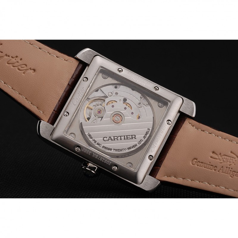 Volver: mecánica transparentes que revelan acero inoxidable pulido atornilladas por la espalda con grabados Cartier