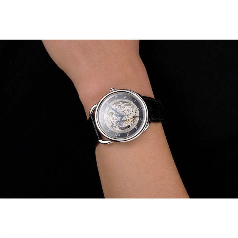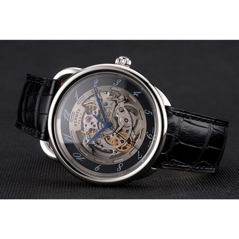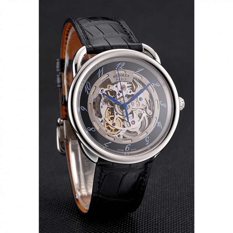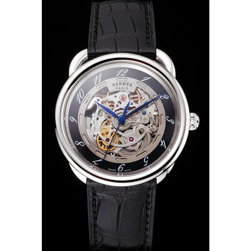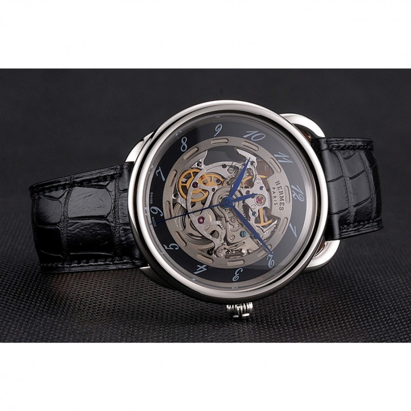 Volver: mecánica transparentes que revelan atrás con acero inoxidable pulido atornillado en la llanta y Hermes grabado
