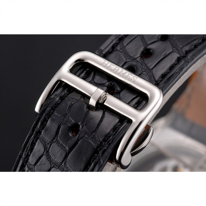 pulsera: correa de cuero Negro cocodrilo con Hermes grabado de acero inoxidable pulido de liberación empuje de gancho hebilla de cierre