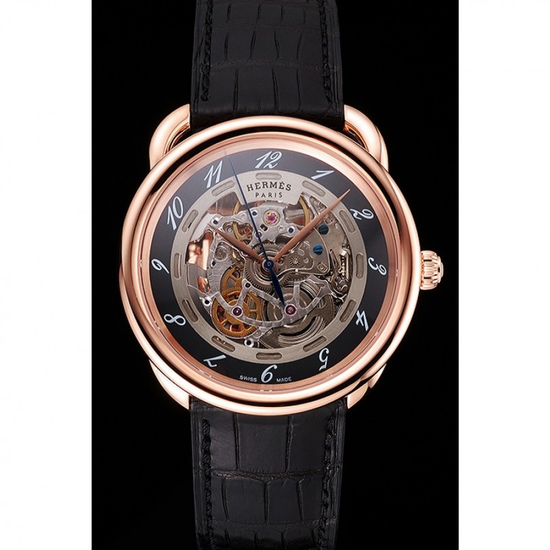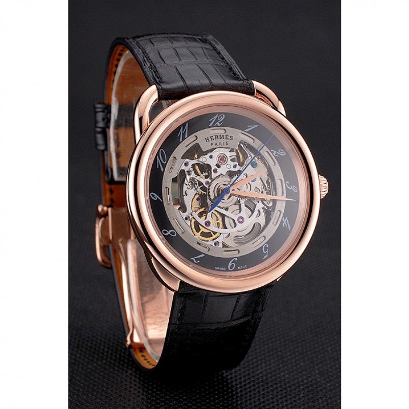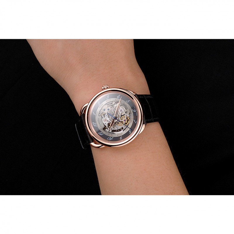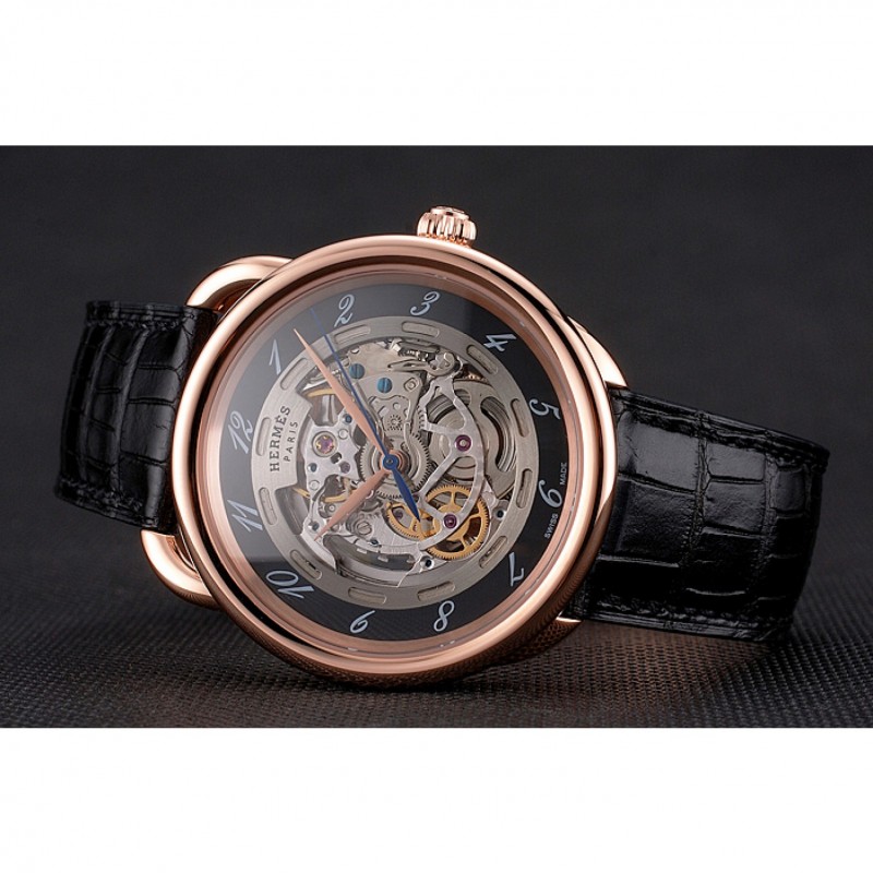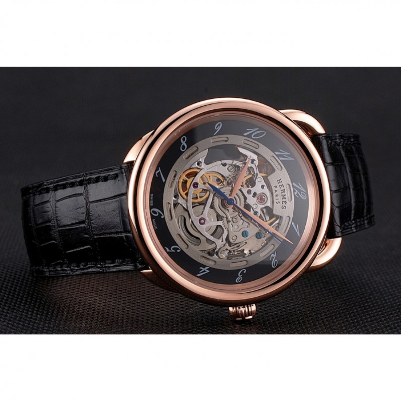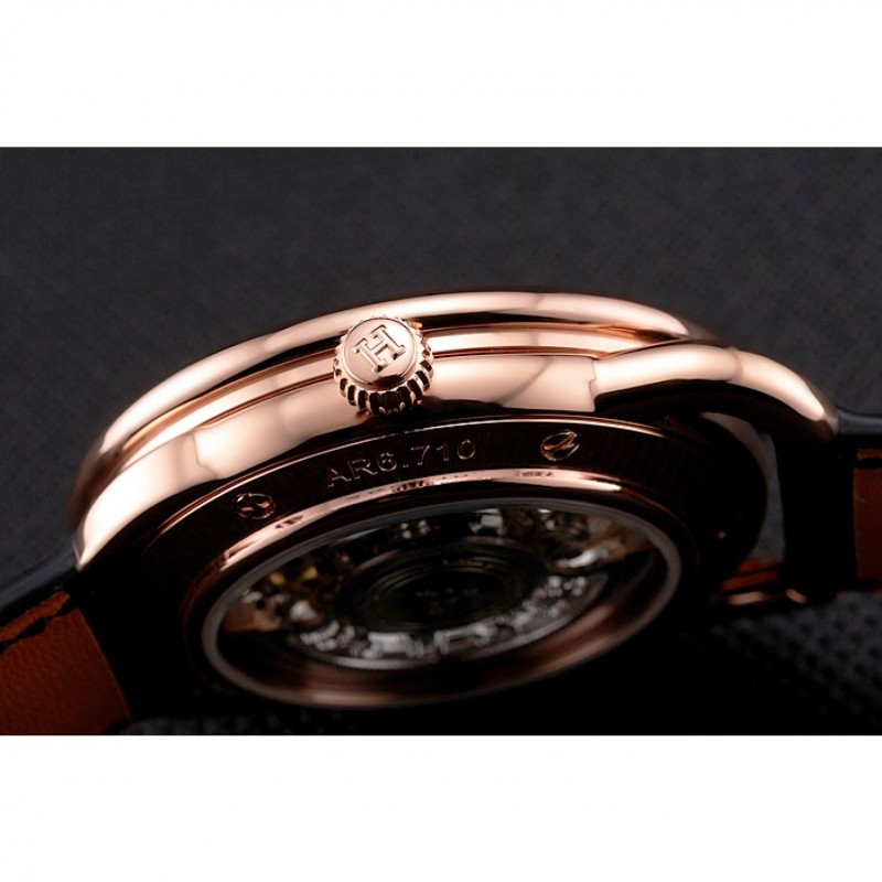 Volver: mecánica transparentes que revelan de vuelta con 18K Rose chapados en oro atornilla en la llanta y Hermes grabado