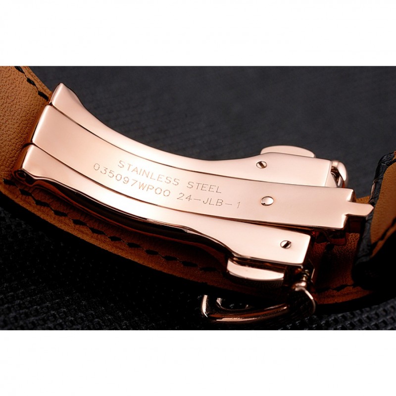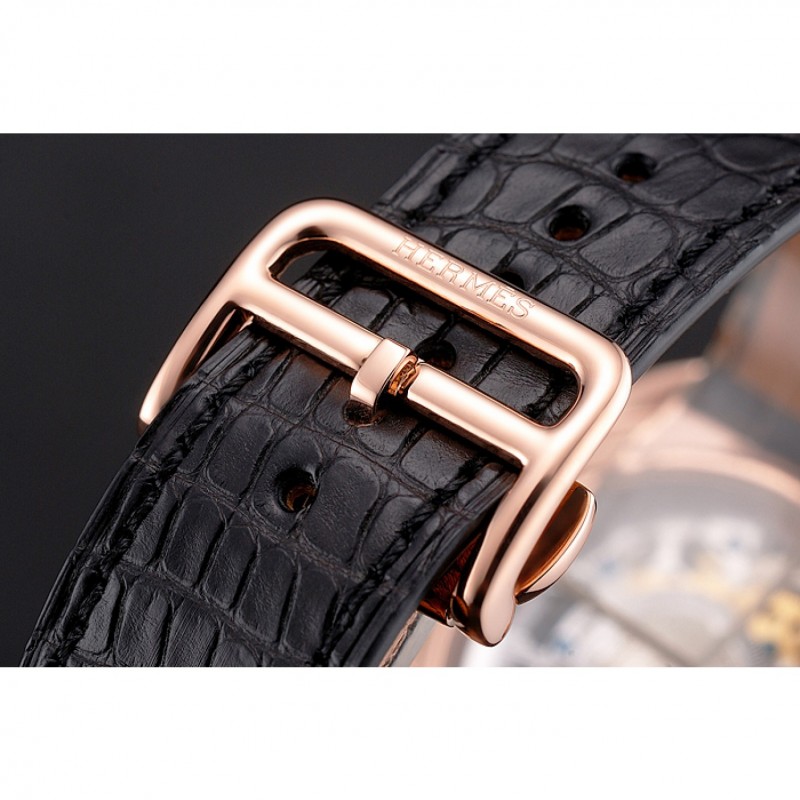 pulsera: correa de cuero Negro cocodrilo con Hermes grabado 18K rose-chapado en oro empujar de liberación de gancho hebilla de cierre