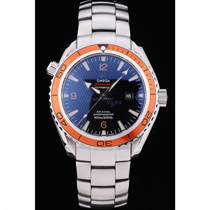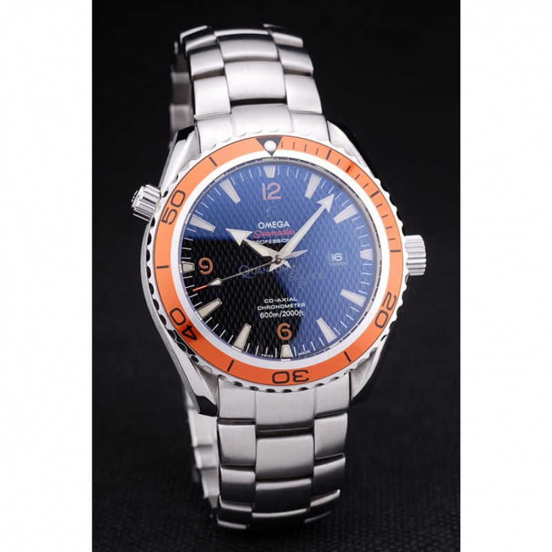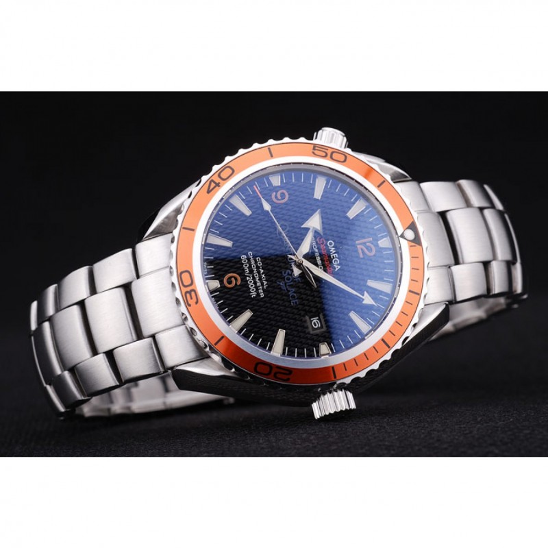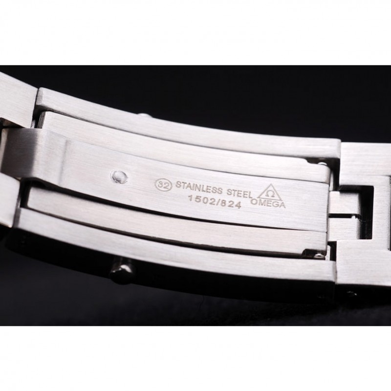 corona: de acero inoxidable pulido cutwork corona con logo Omega además otra corona similares en la esquina superior opuestaspan>