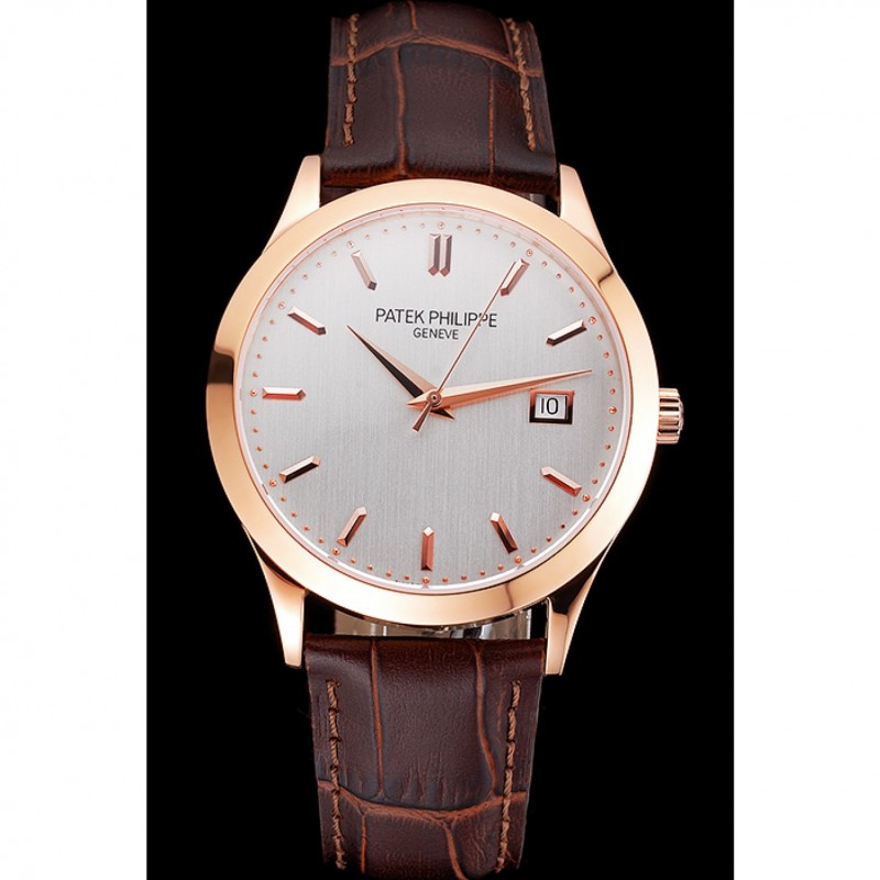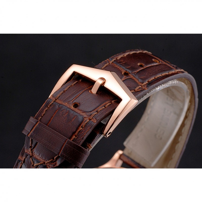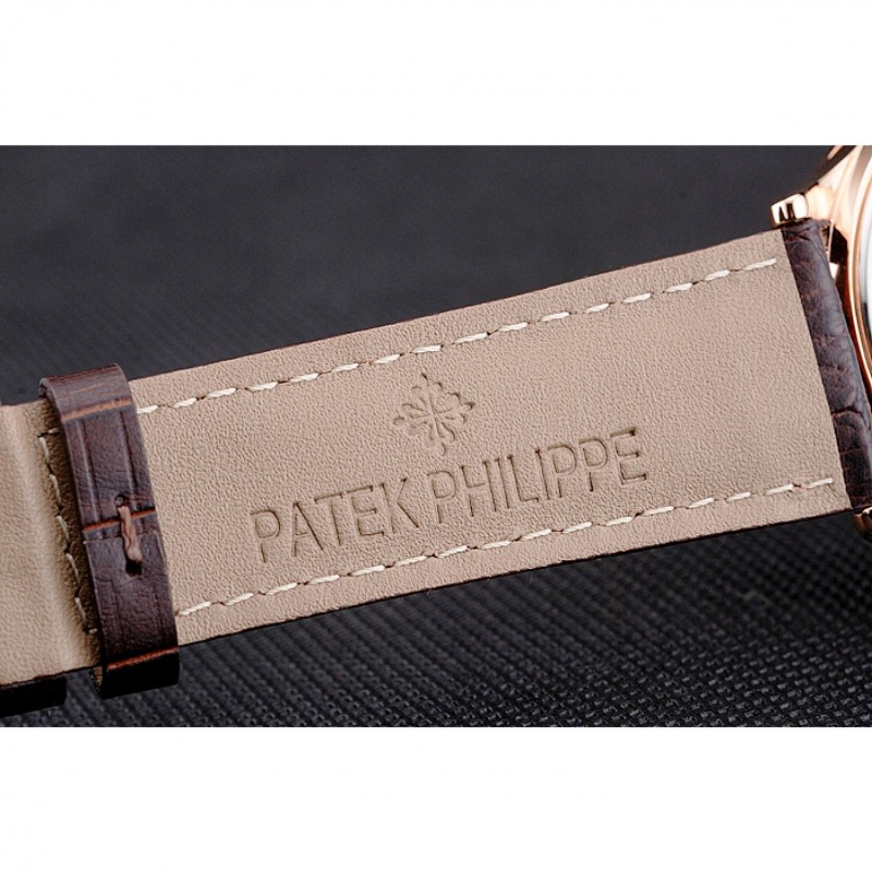 pulsera: logotipo y calor Patek Philippe en relieve correa de piel de cocodrilo marrón con rosa de 18 quilates chapado en oro gancho hebilla de cierre
