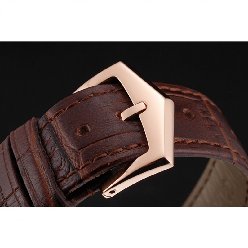 pulsera: calor correa de piel de cocodrilo marrón en relieve Patek Philippe Geneve rosa de 18 quilates chapado en oro gancho hebilla de cierre