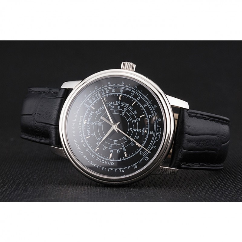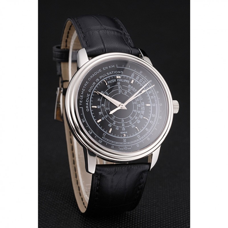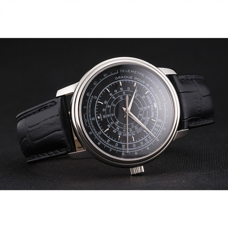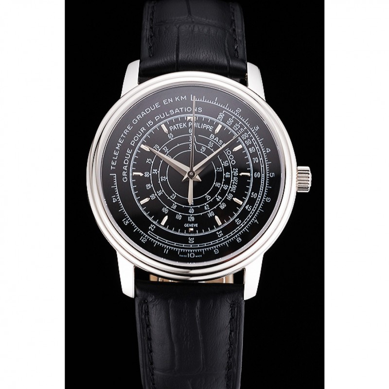 Inicio / Patek Philippe / Complications / Suizo Patek Philippe Multi-Scale Cronógrafo Negro Dial correa de cuero caja de acero inoxidable Negro