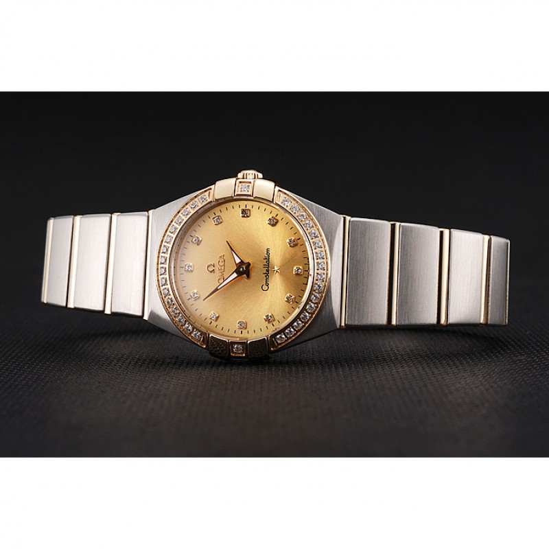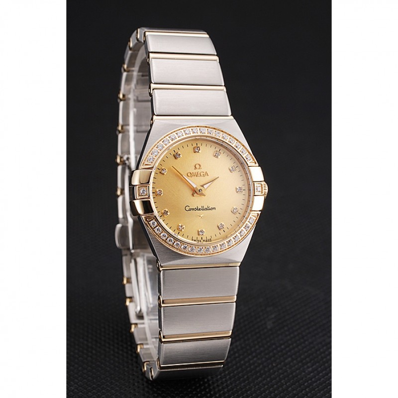 corona: 18k oro amarillo plateado corona cutwork con logo Omega