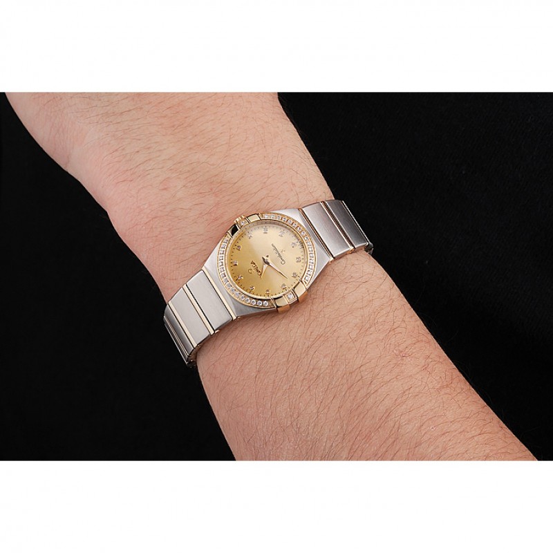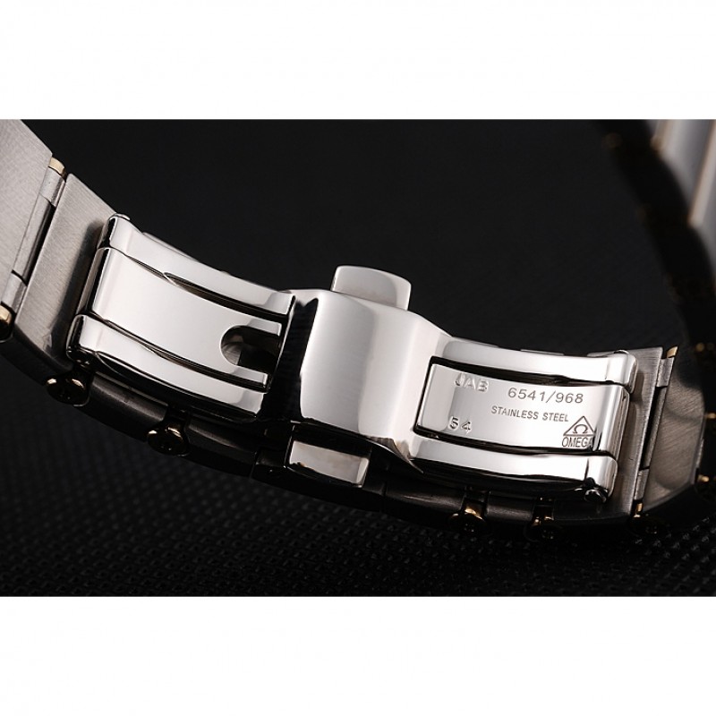 pulsera: 18k oro amarillo plateado y cepillado de acero inoxidable brazalete de eslabones de oro amarillo plateado cierre oculto Omega liberación logotipo de empuje