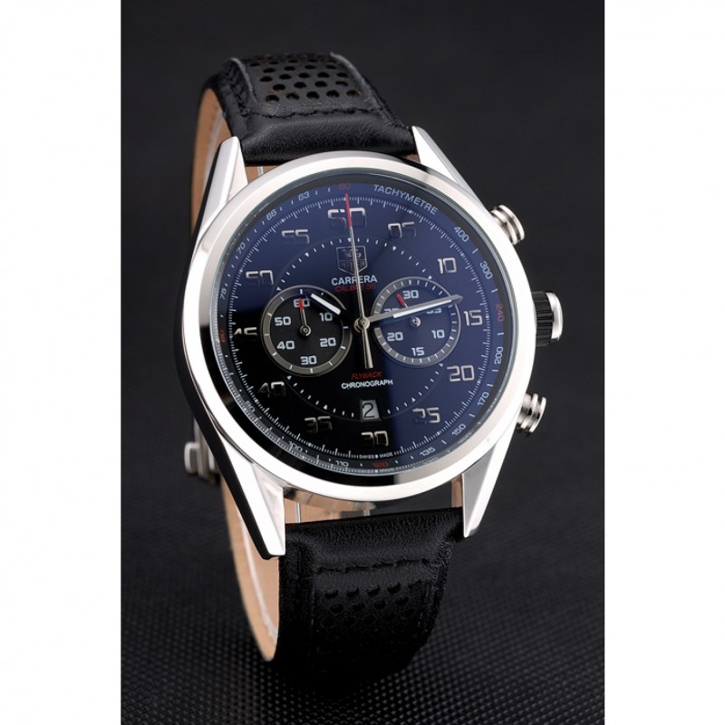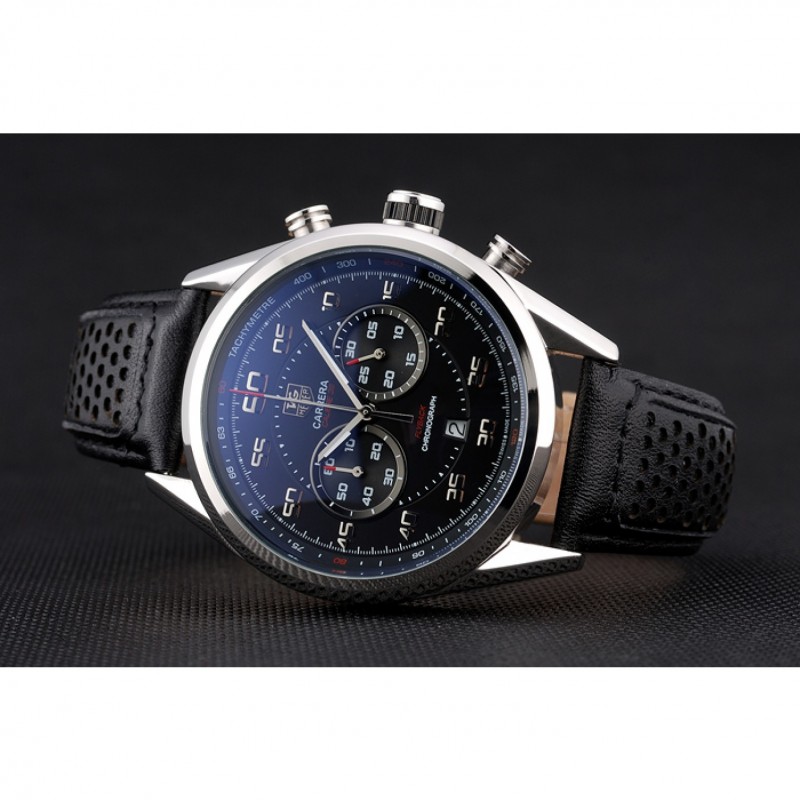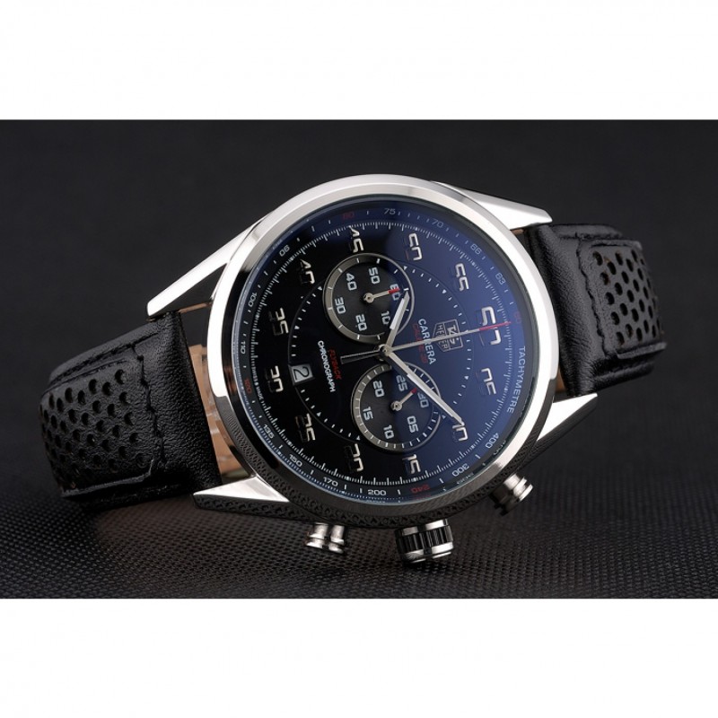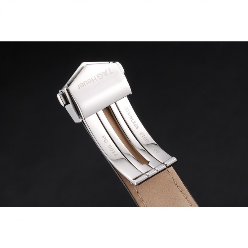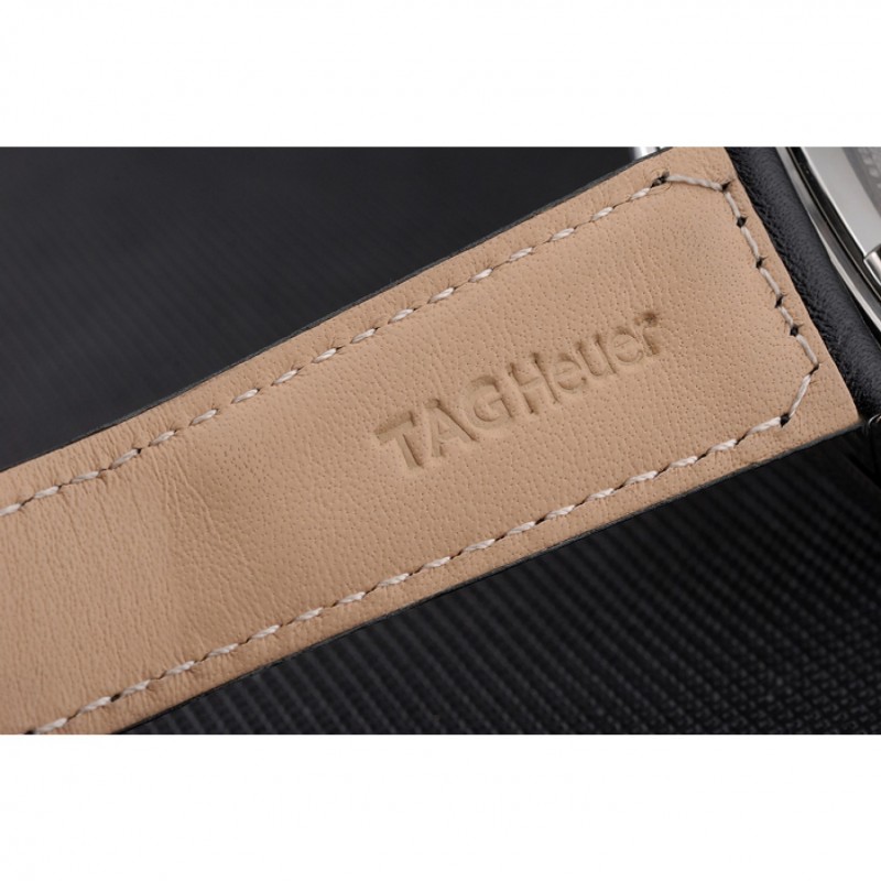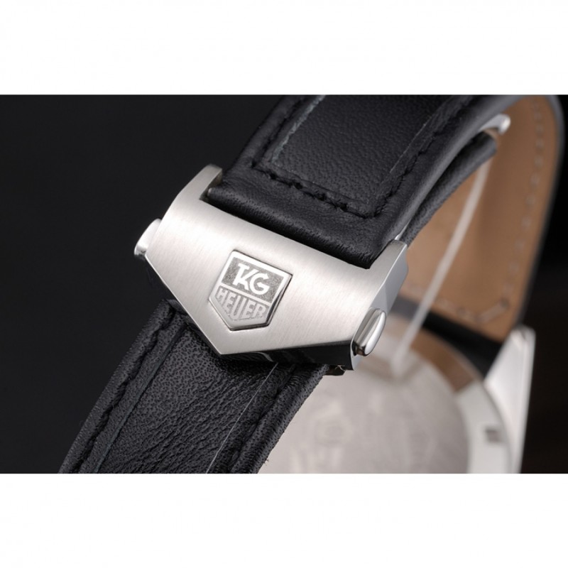 pulsera: correa de piel de becerro negro en relieve de etiquetas de calor Heuer con tag Heuer grabado de acero inoxidable pulido push-liberación de la tapa en el corchete