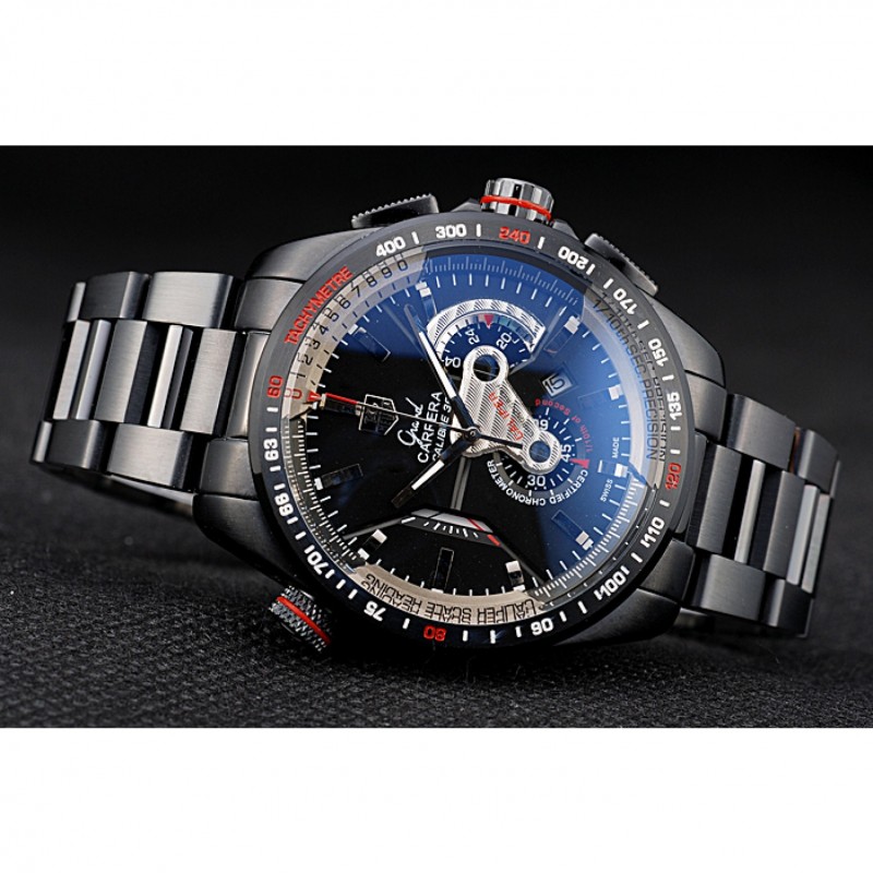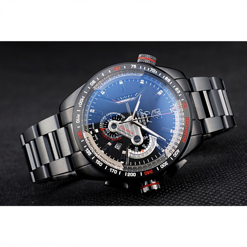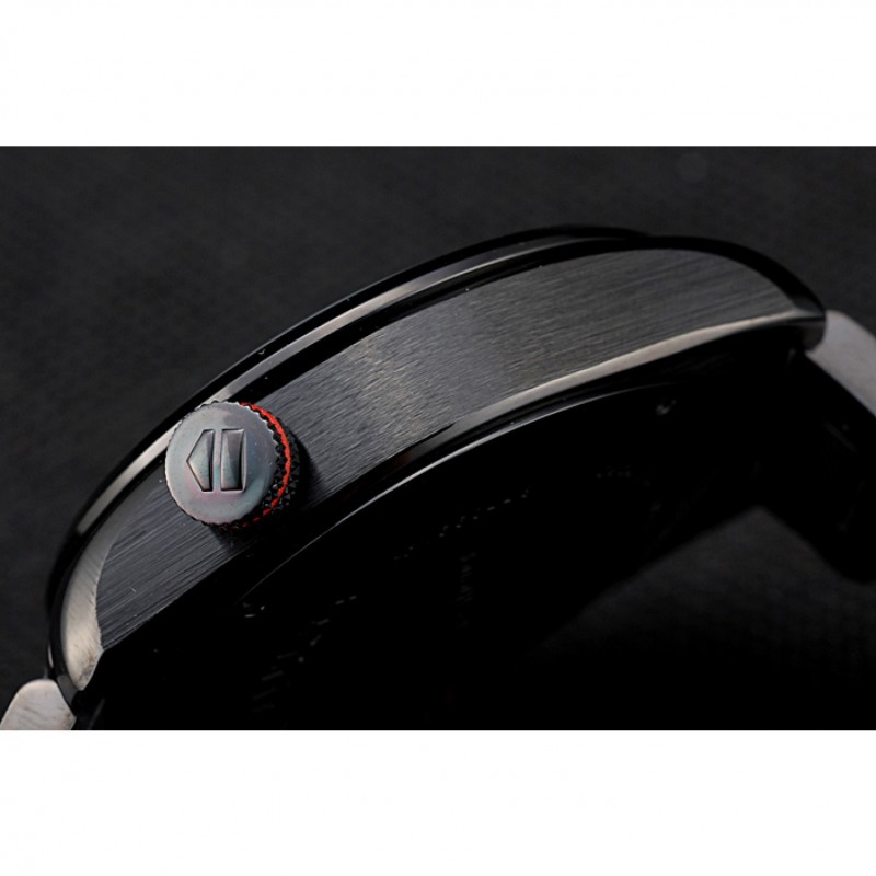 corona: chapado-Ion corona calado con la etiqueta logotipo Heuer y el ajuste de la banda roja y dos largas coronas de pulsador a cada lado de ella, más una corona de ion-plateado logotipo grabado con la banda de la franja roja en la esquina superior opuestaspan>