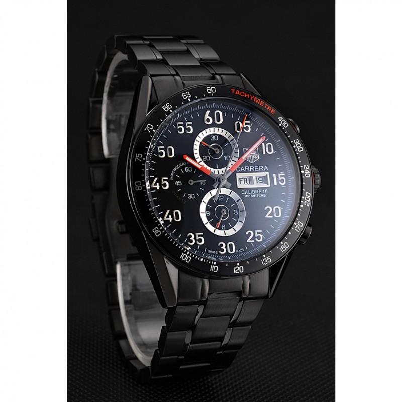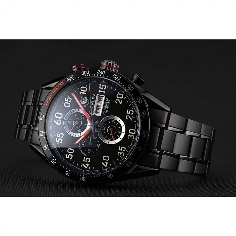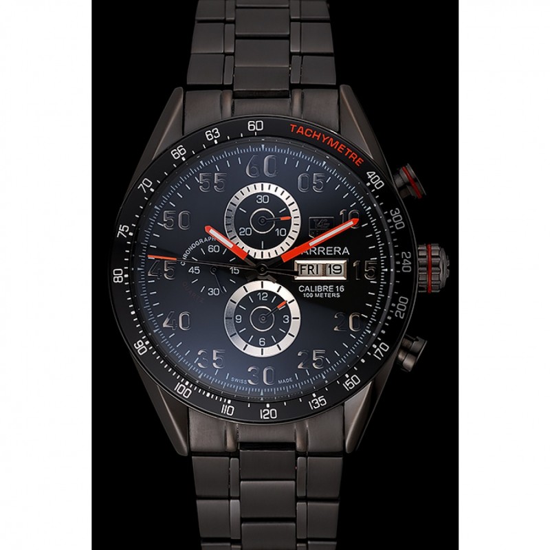 Crown: Tag logo Heuer grabado negro de cerámica corona cutwork con una ronda corona botón pulsador en cada lado de ella