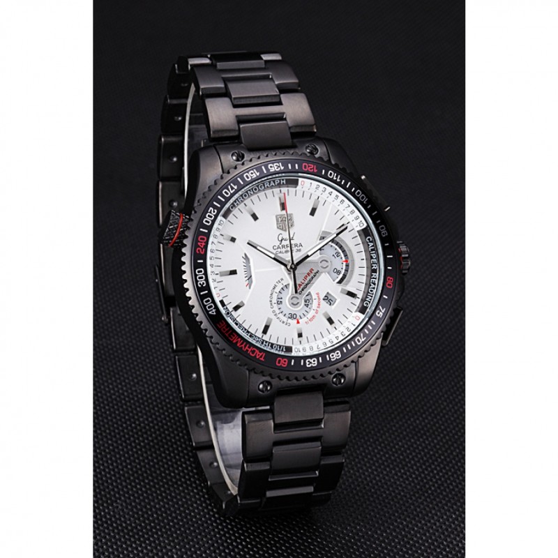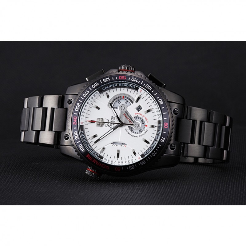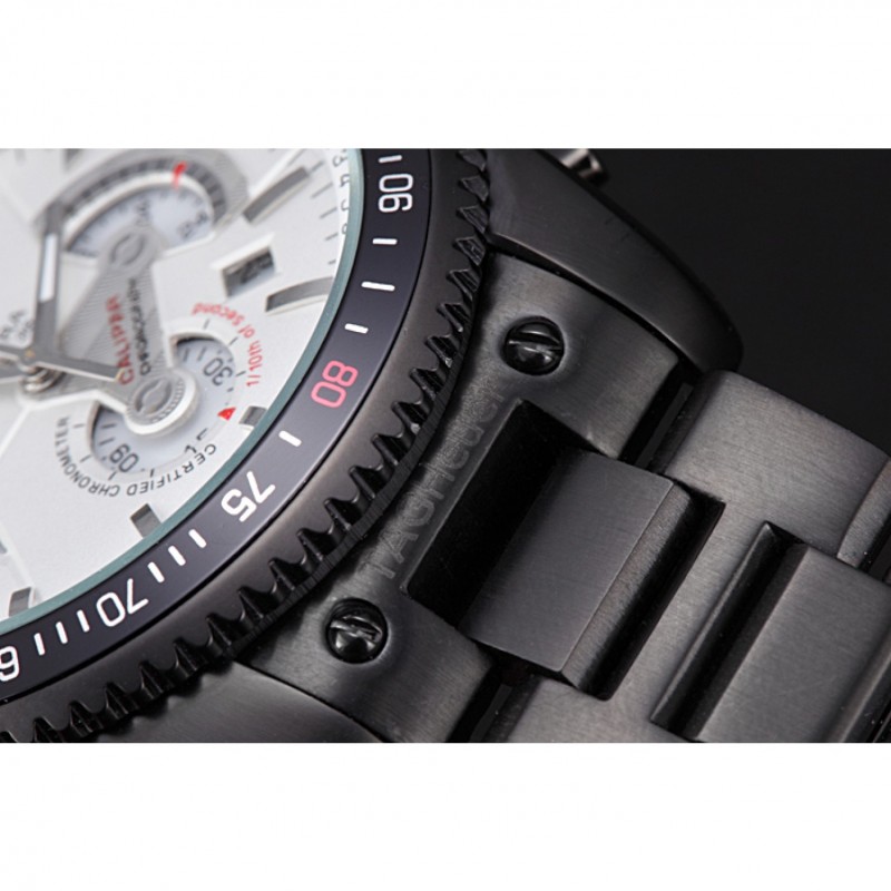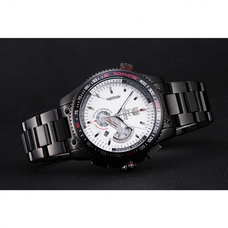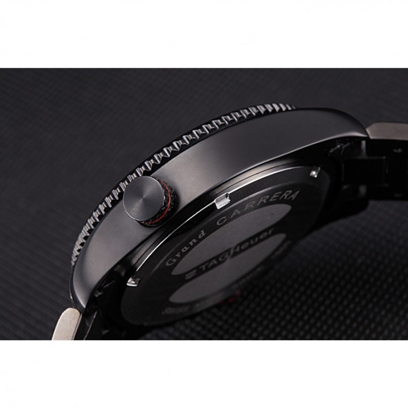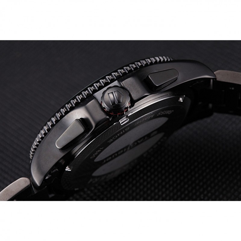 corona: chapado-Ion corona calado con la etiqueta logotipo Heuer y el ajuste de la banda roja y dos largas coronas de pulsador a cada lado de ella, más una corona de ion-plateado logotipo grabado con la banda de la franja roja en la esquina superior opuestaspan>
