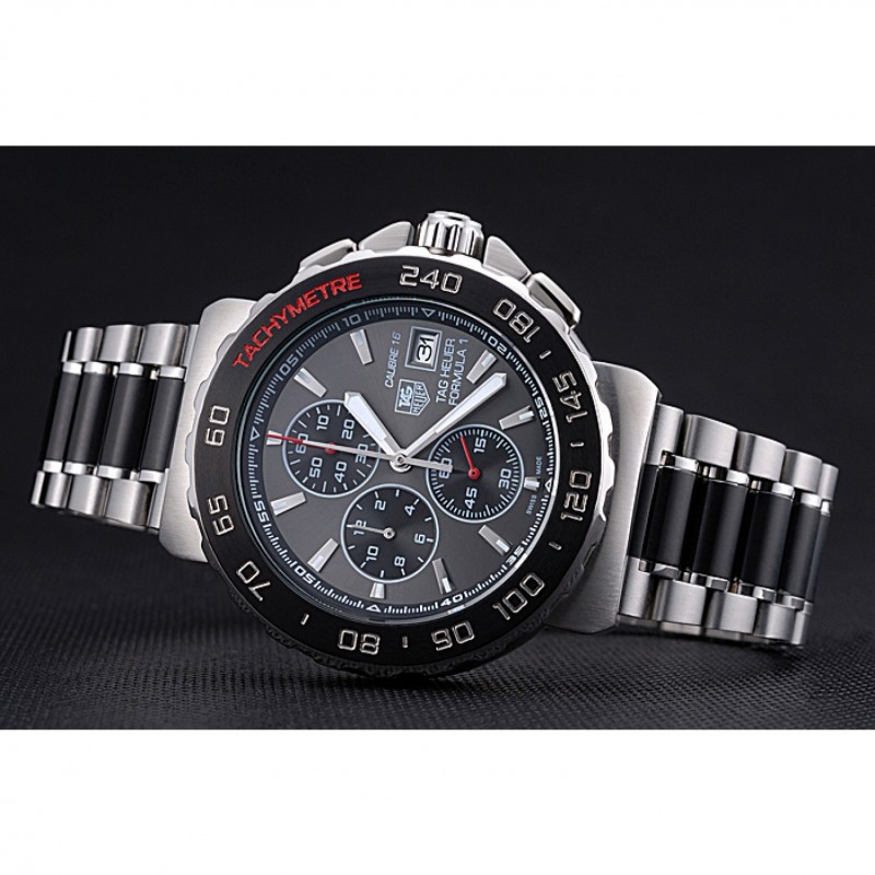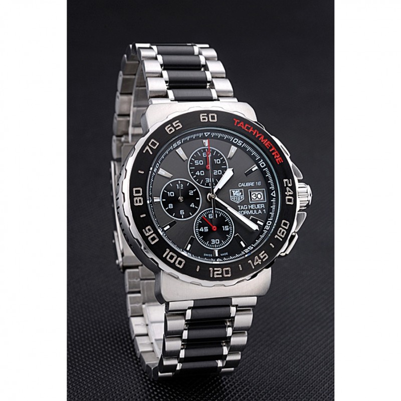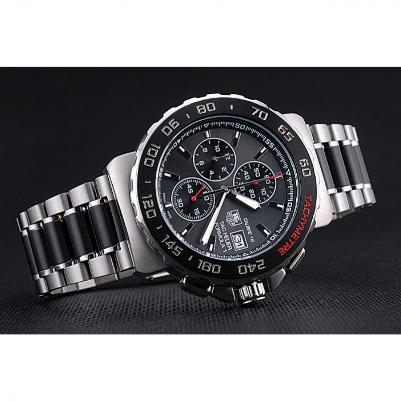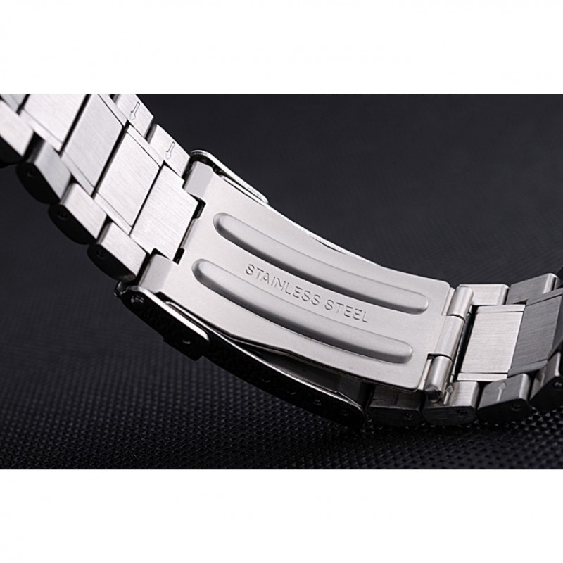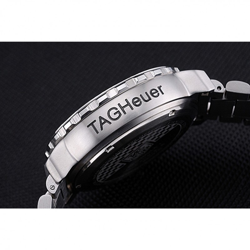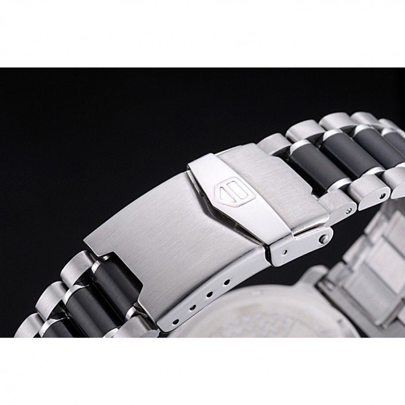 corona: Tag logo Heuer grabado pulido corona calado de acero inoxidable con dos coronas de pulsador a cada lado de ella
