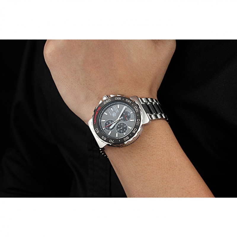pulsera: Ion-plateado y cepillado pulsera de eslabones de acero inoxidable con logo TAG Heuer grabado implementación de cierre