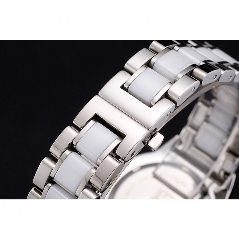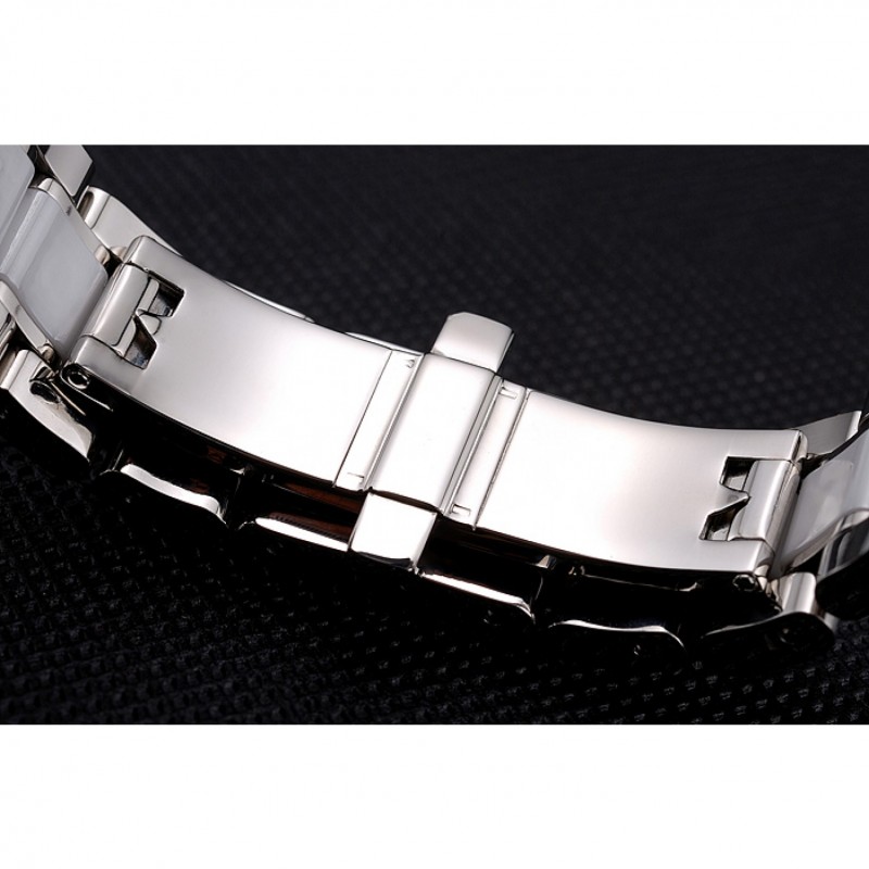 pulsera: pulido de acero inoxidable y blanco de cerámica brazalete de eslabones con cierre oculto de liberación empuje