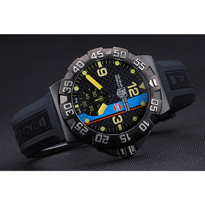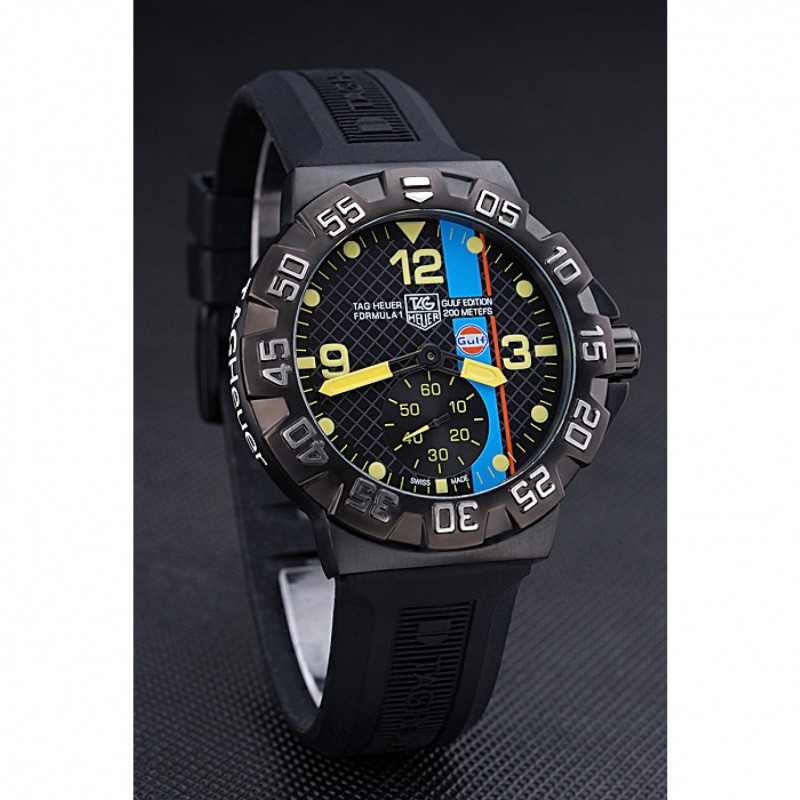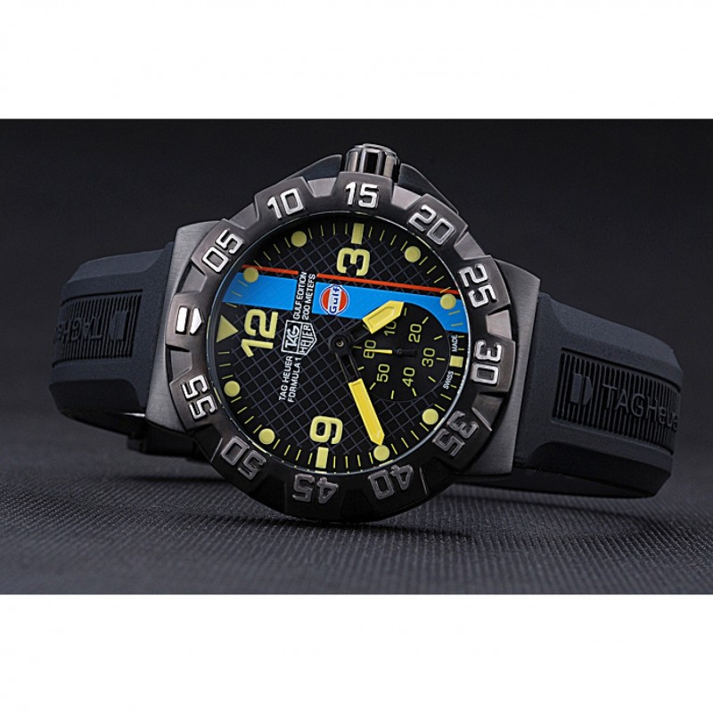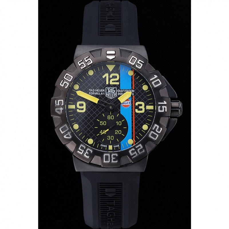 pulsera: correa de caucho Negro con Tag Heuer grabado de ion-plateado gancho hebilla de cierre