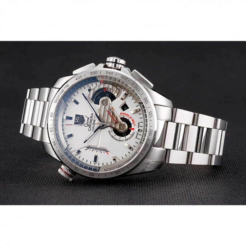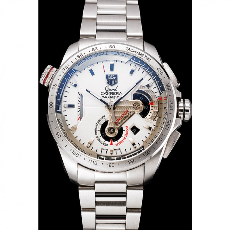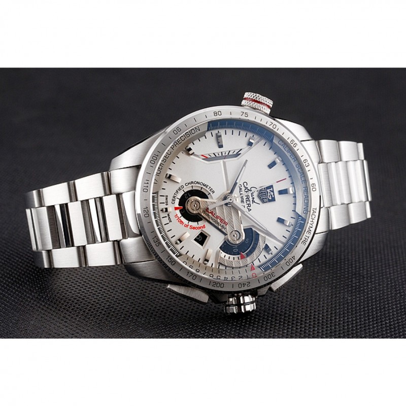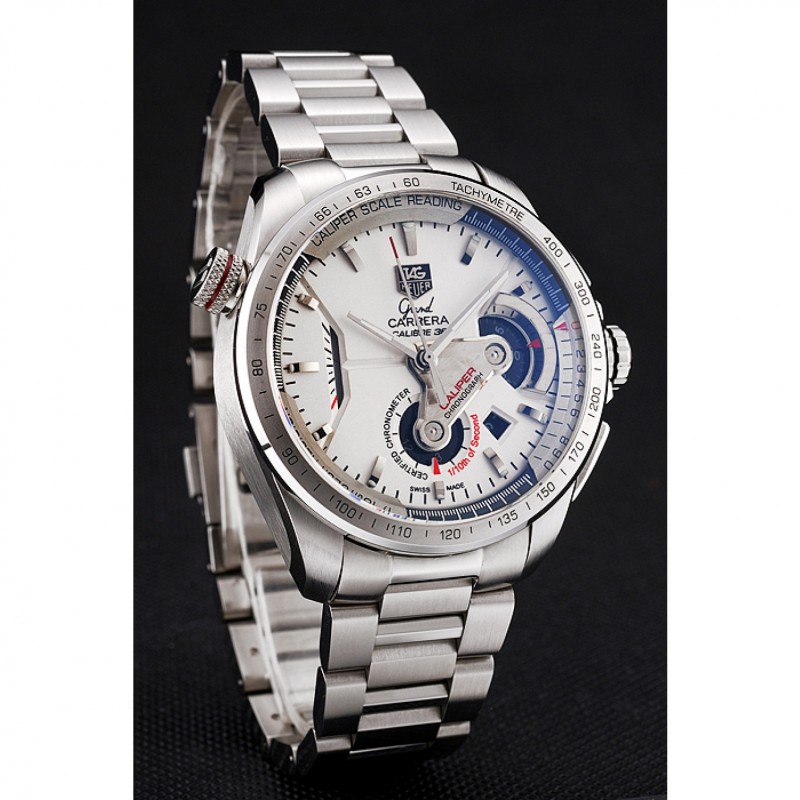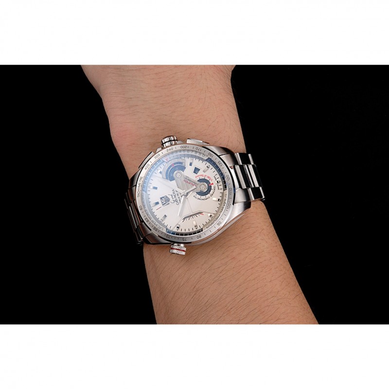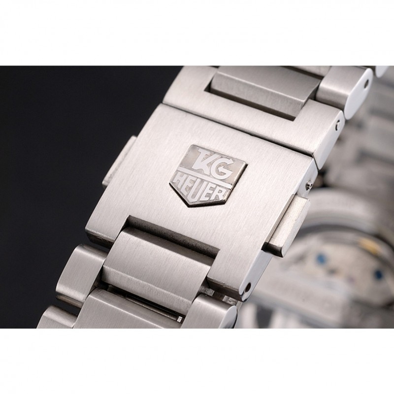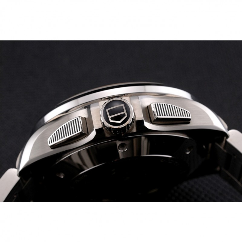 corona: pulido corona calado de acero inoxidable con negro esmalte logo TAG Heuer más dos coronas de pulsador rectangulares a cada lado y uno grande corona en la esquina superior opuesta con el logotipo