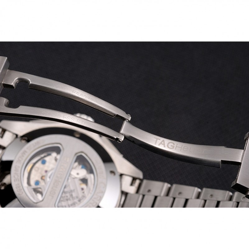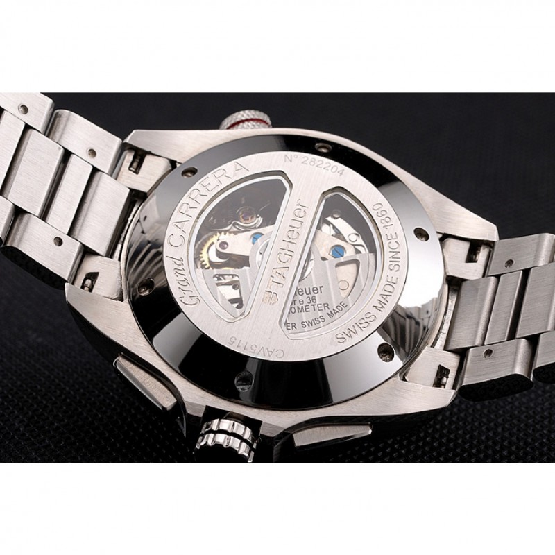 Volver: acero inoxidable empujón en la espalda con la mecánica transparentes que revelan centro y la etiqueta grabados Heuer