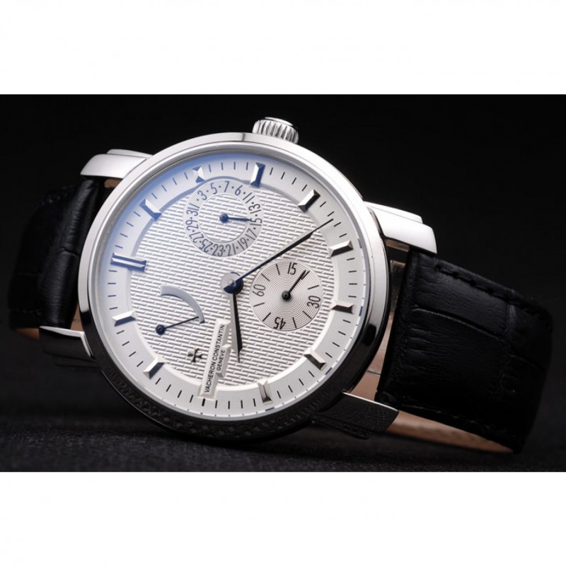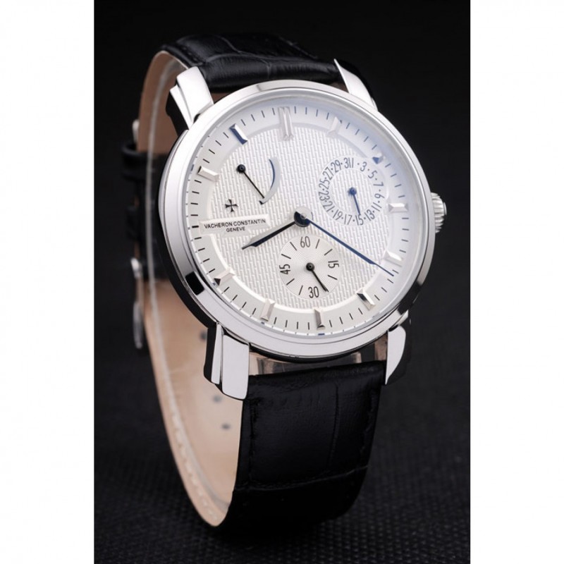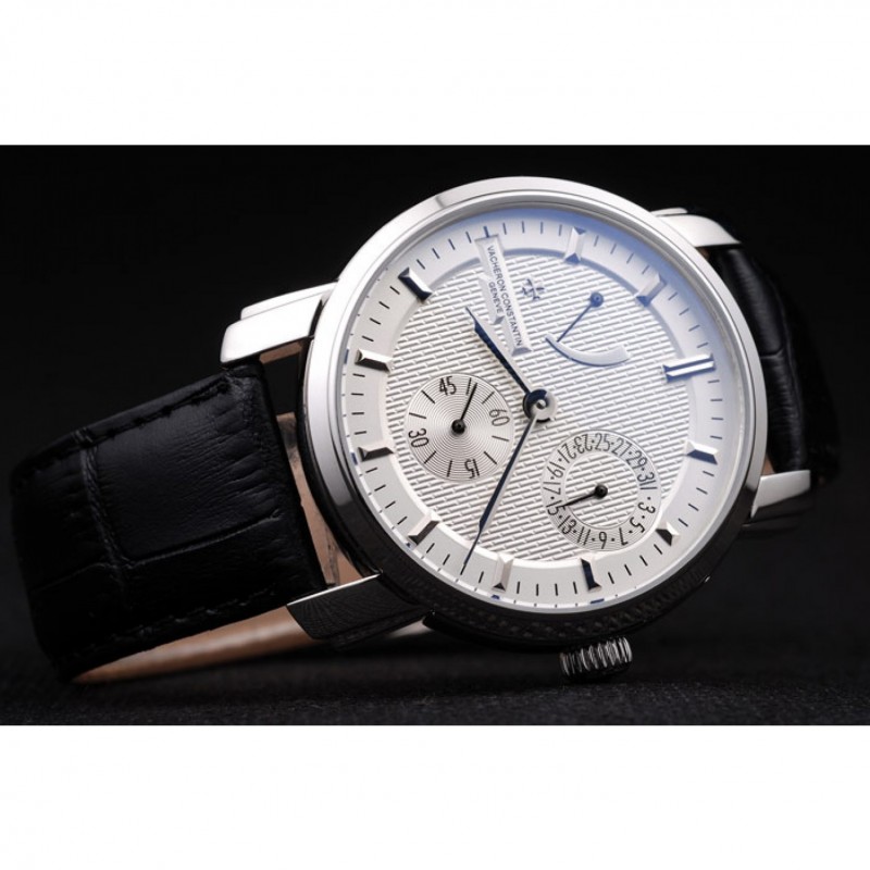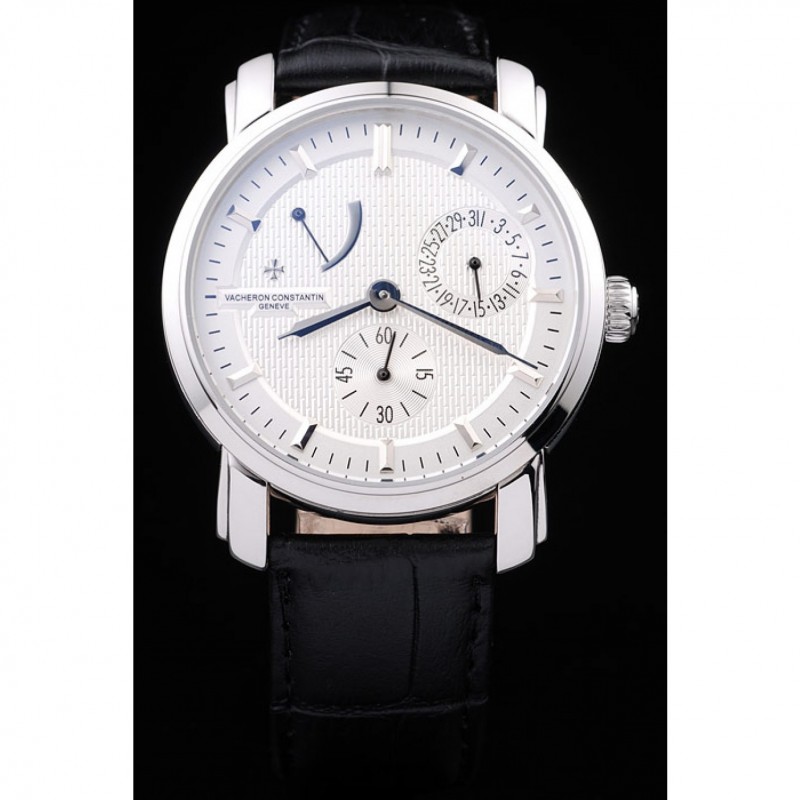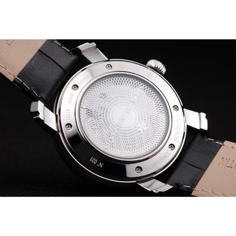 pulsera: correa de piel de cocodrilo Negro con relieve de calor sello de Vacheron Constantin y acero inoxidable pulido Vacheron Constantin logotipo de gancho hebilla de cierre