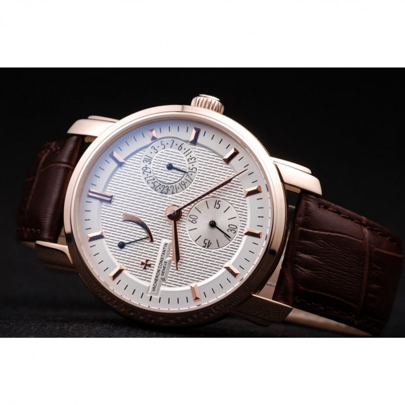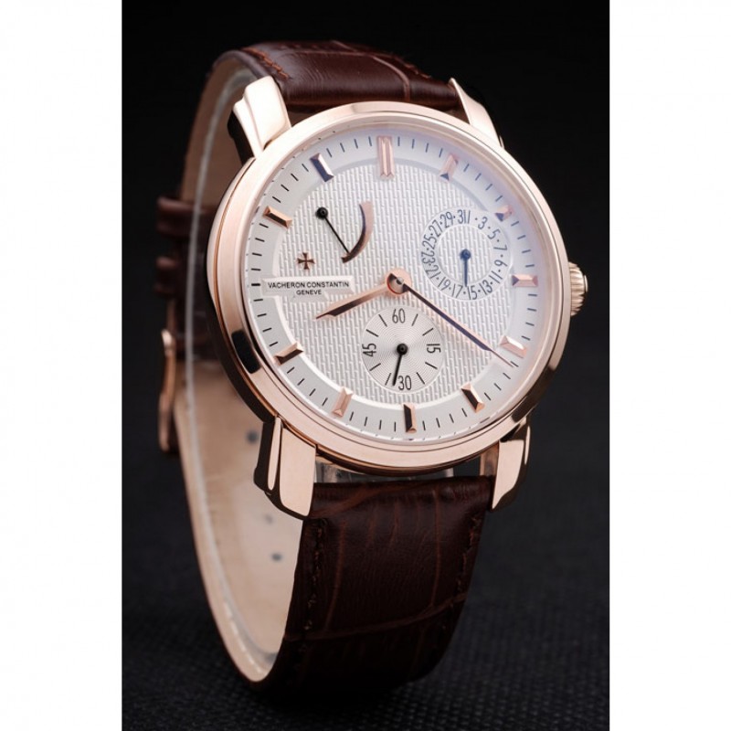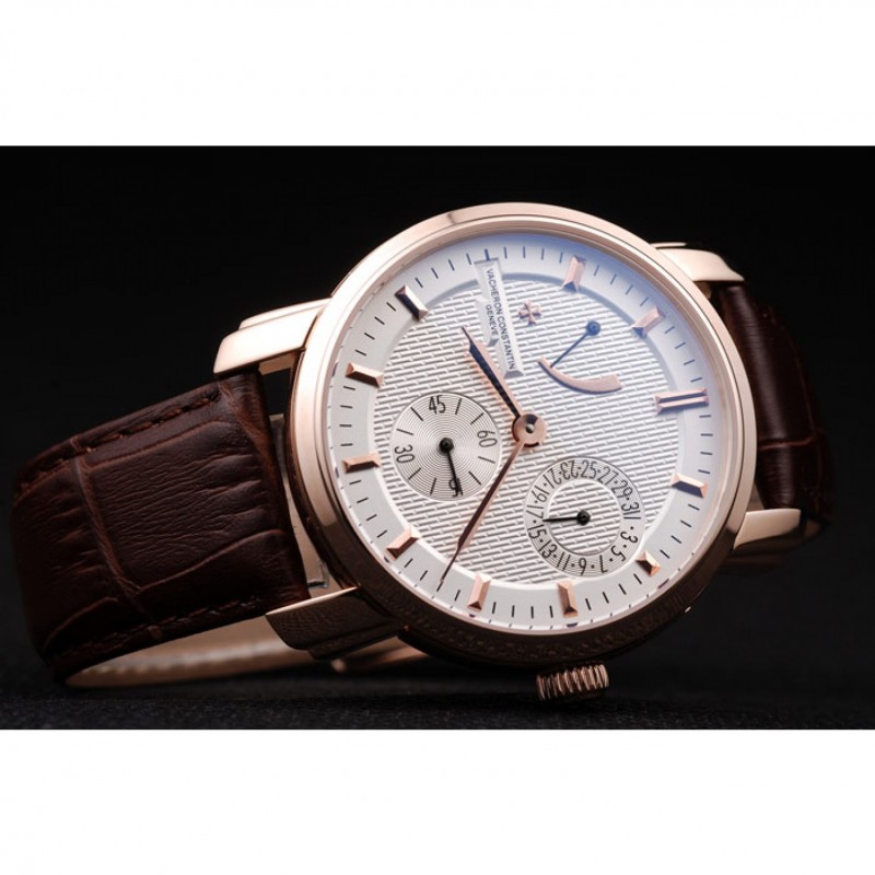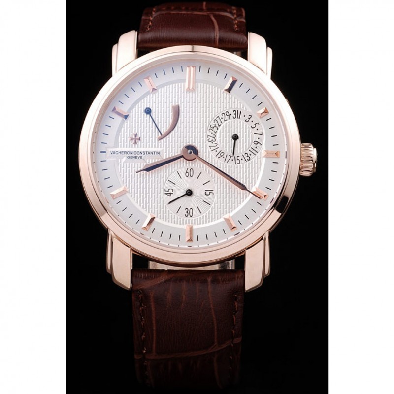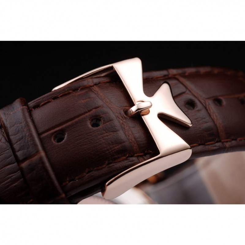 pulsera: correa de piel de cocodrilo marrón con relieve de calor sello de Vacheron Constantin y la rosa bañados en oro Vacheron Constantin logotipo de gancho hebilla de cierre