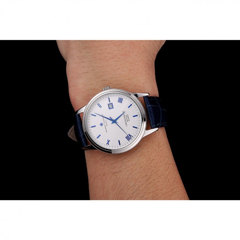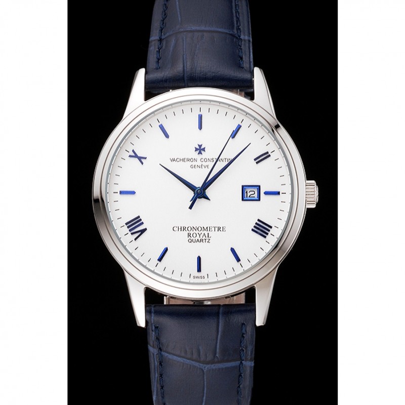 Inicio / Vacheron Constantin / Vacheron Constantin Patrimonio Chronometre Real Blanco Dial correa de cuero caja de acero inoxidable Azul