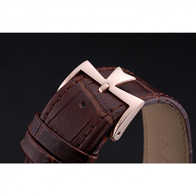 pulsera: logo y correa de piel de cocodrilo marrón de calor Vacheron Constantin en relieve rosa de 18 quilates chapado en oro logotipo de tallado gancho hebilla de cierre
