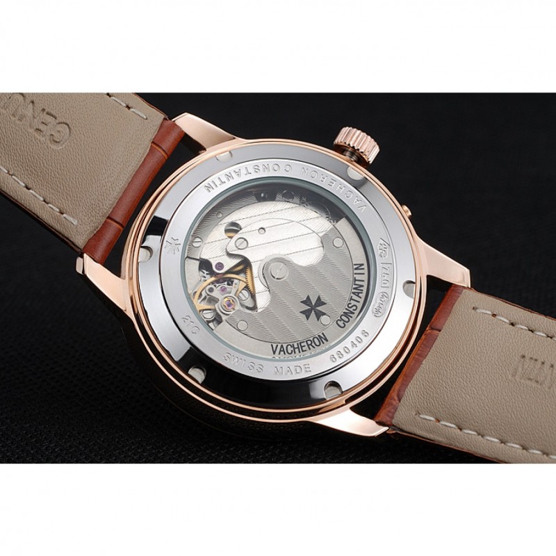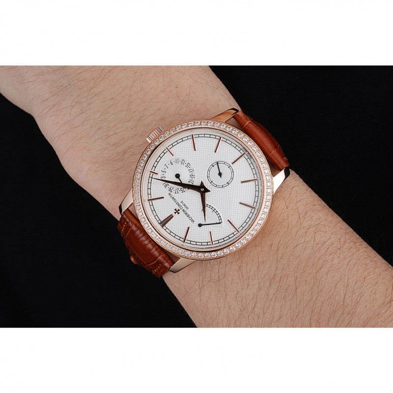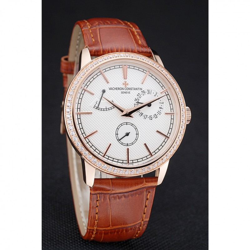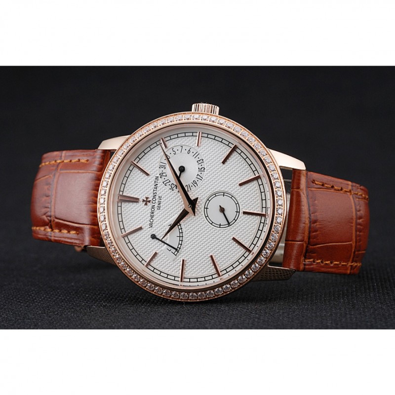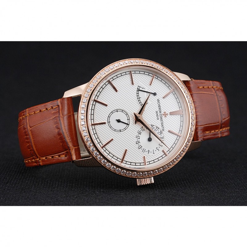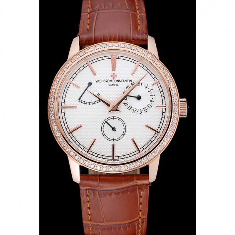 Inicio / Vacheron Constantin / Vacheron Constantin Patrimonio De Reserva esfera blanca diamante Caja Oro Brown pulsera de cuero 1454268