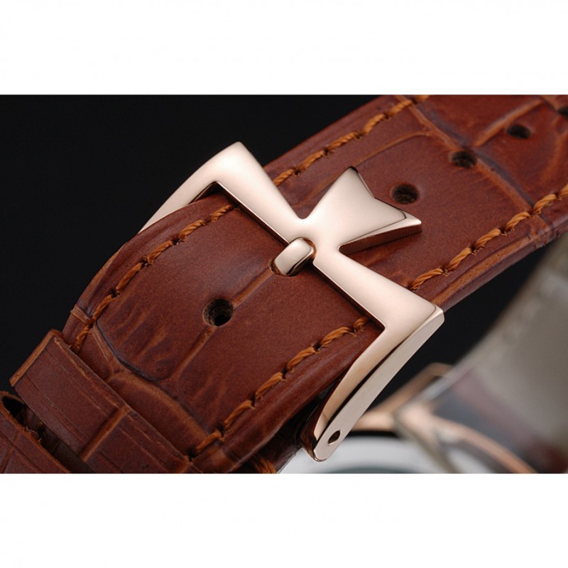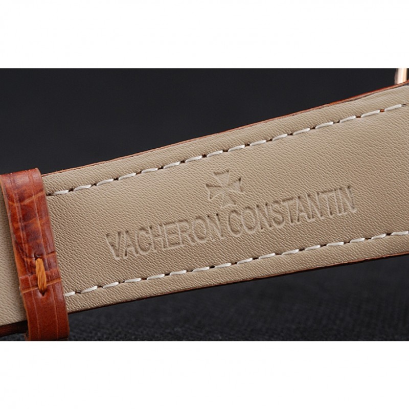 pulsera: correa de piel de cocodrilo marrón de calor Vacheron Constantin en relieve con el logotipo de Vacheron Constantin 18k tallado de oro rosa plateado broche de gancho hebilla