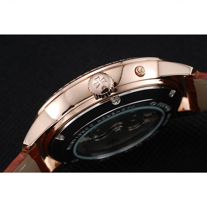 Crown: 18k logo Vacheron Constantin grabado rosa-chapado en oro cutwork corona