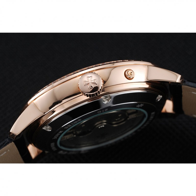 Crown: 18k logo Vacheron Constantin grabado rosa-chapado en oro cutwork corona