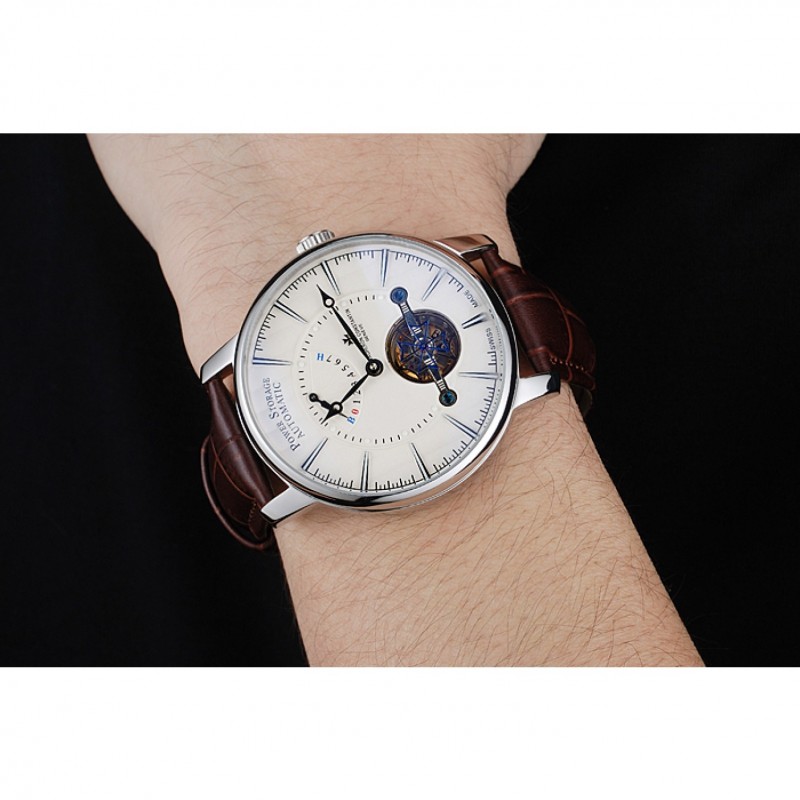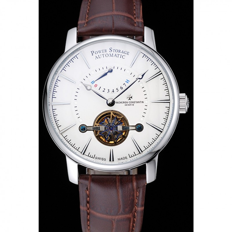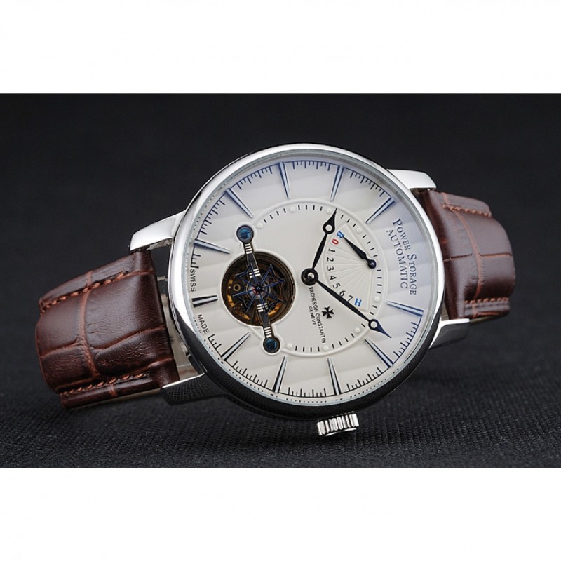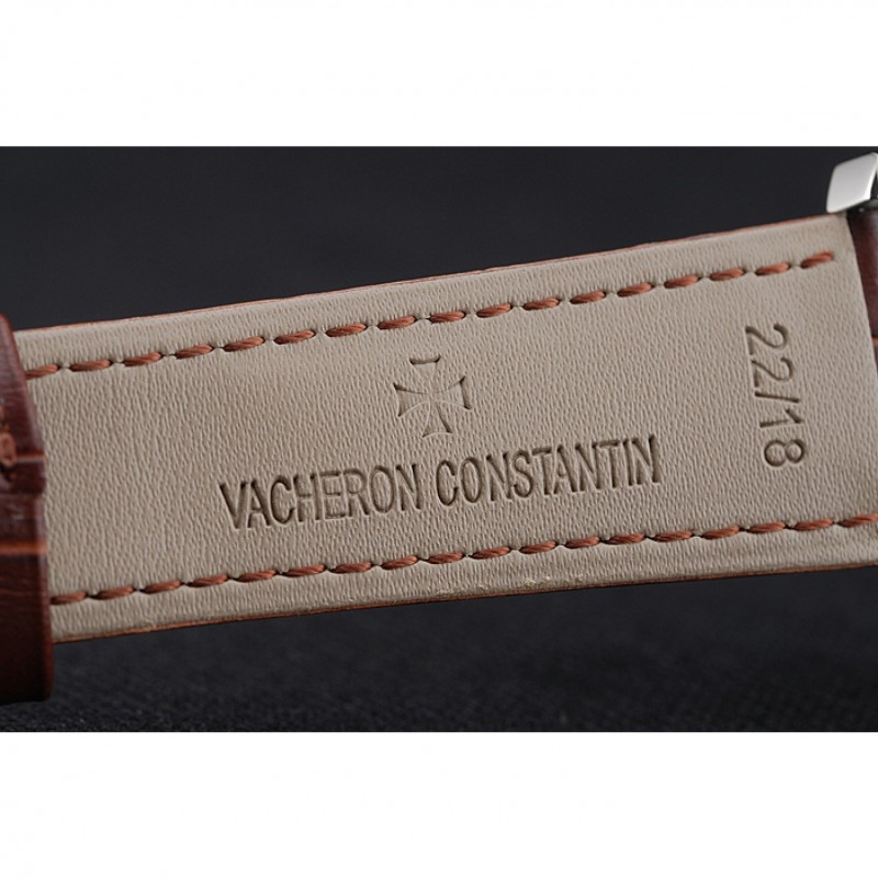 pulsera: relieve calor Vacheron Constantin correa de piel de cocodrilo marrón con el logotipo de Vacheron Constantin tallado, pulido de acero inoxidable gancho hebilla de cierre
