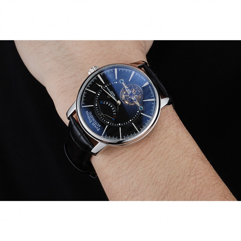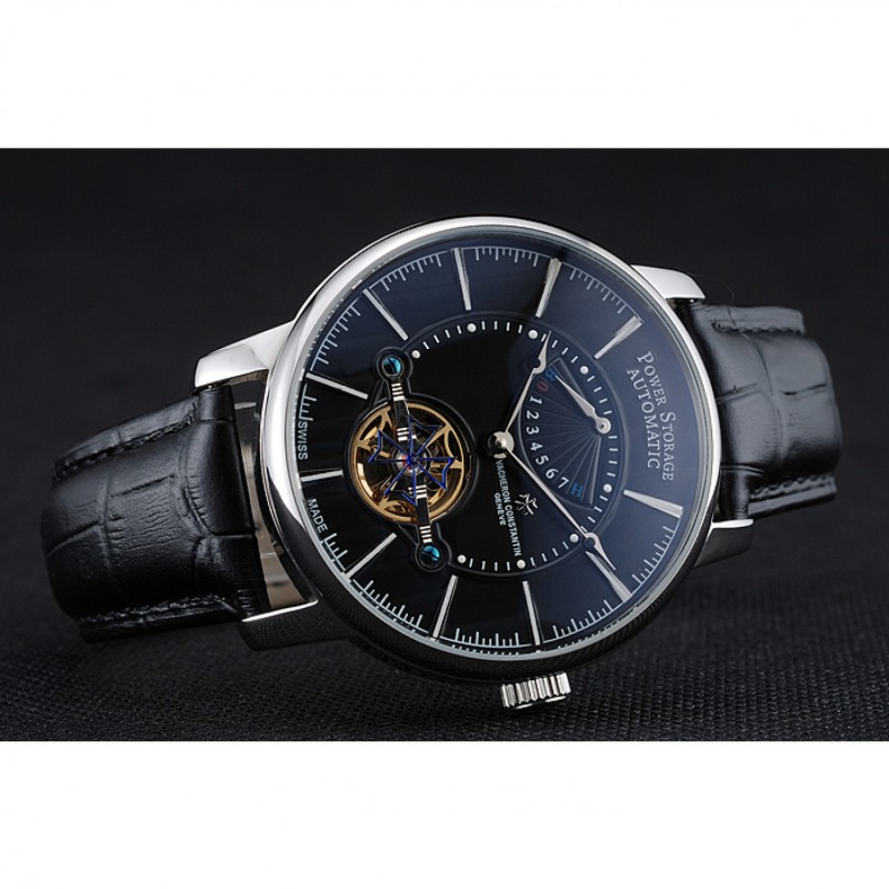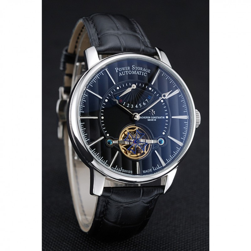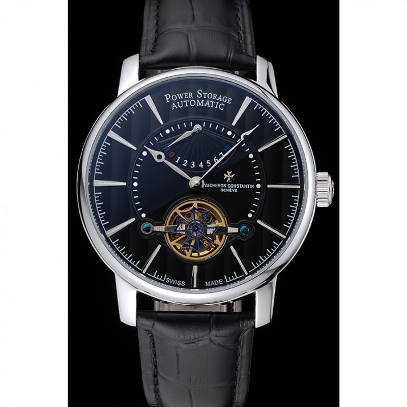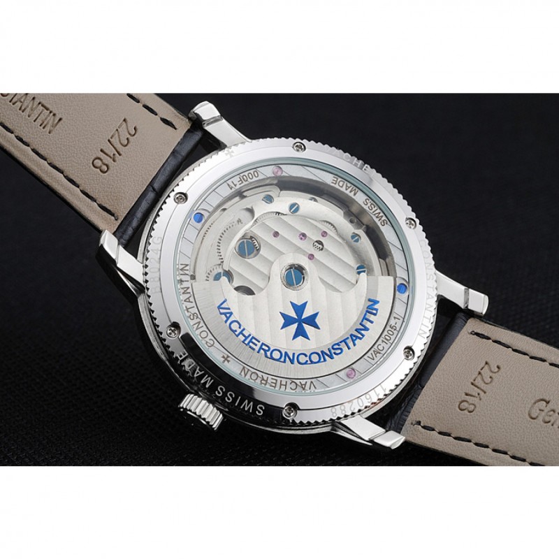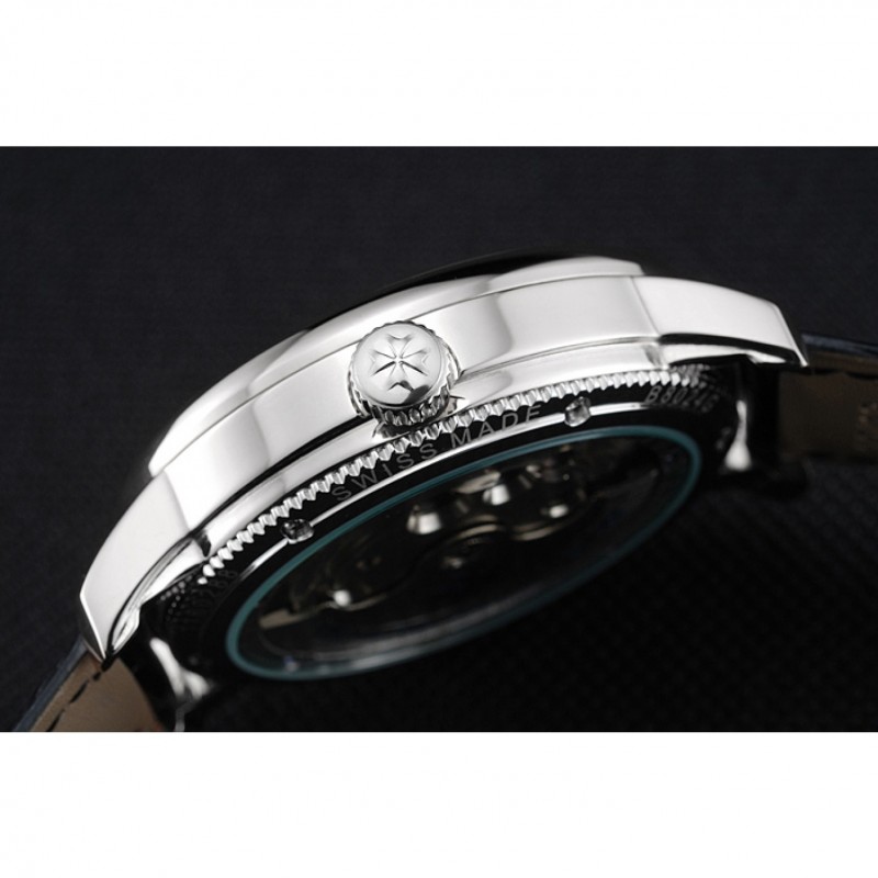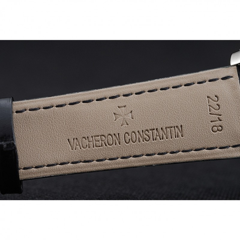 pulsera: relieve calor Vacheron Constantin correa de piel de cocodrilo negro con el logotipo de Vacheron Constantin tallado, pulido de acero inoxidable gancho hebilla de cierre