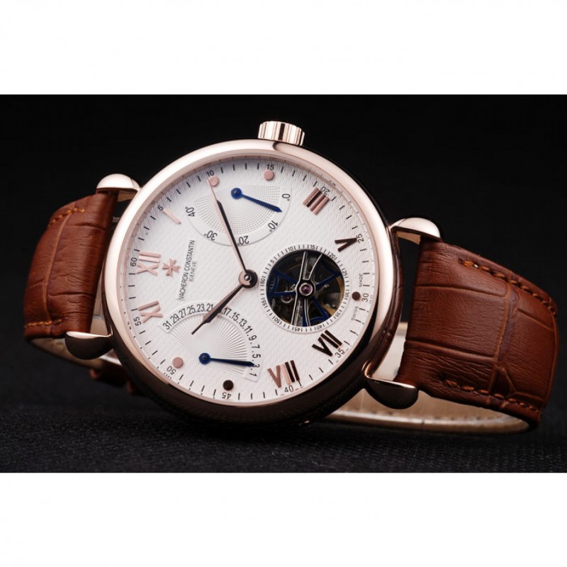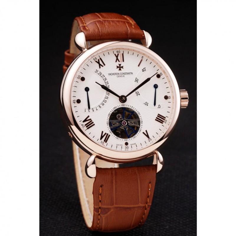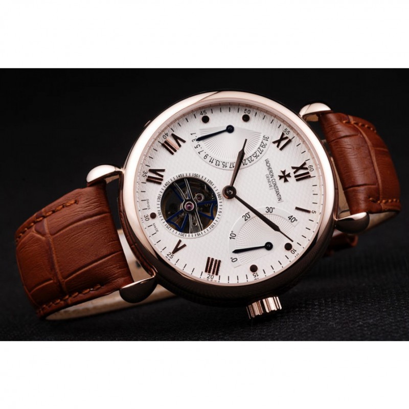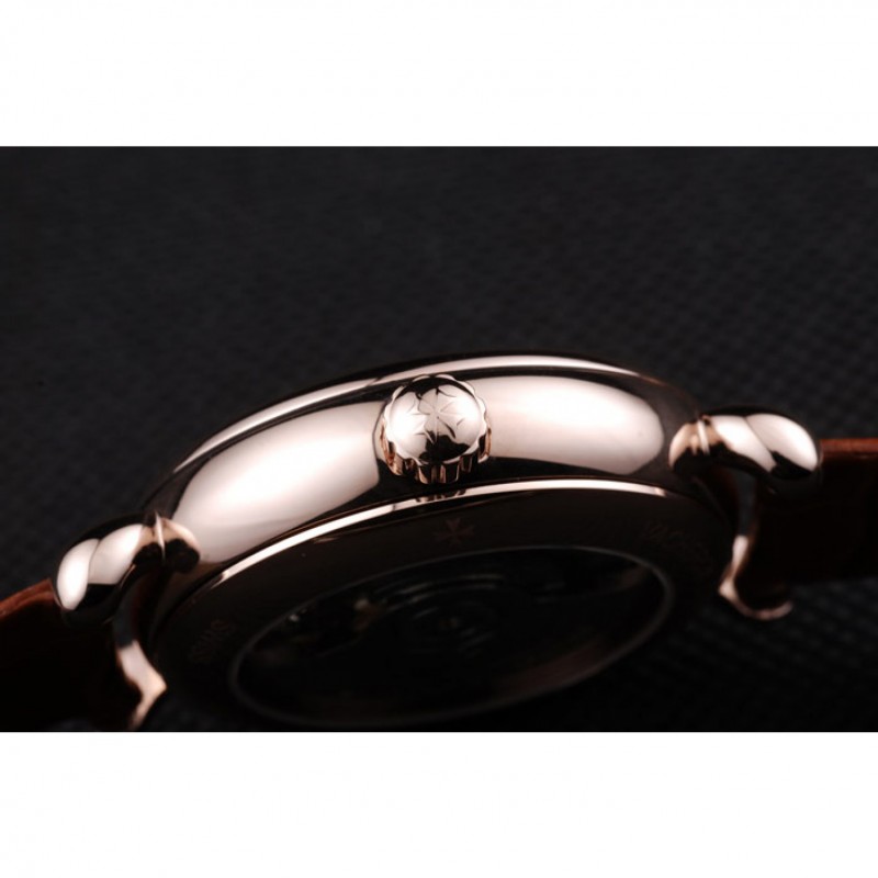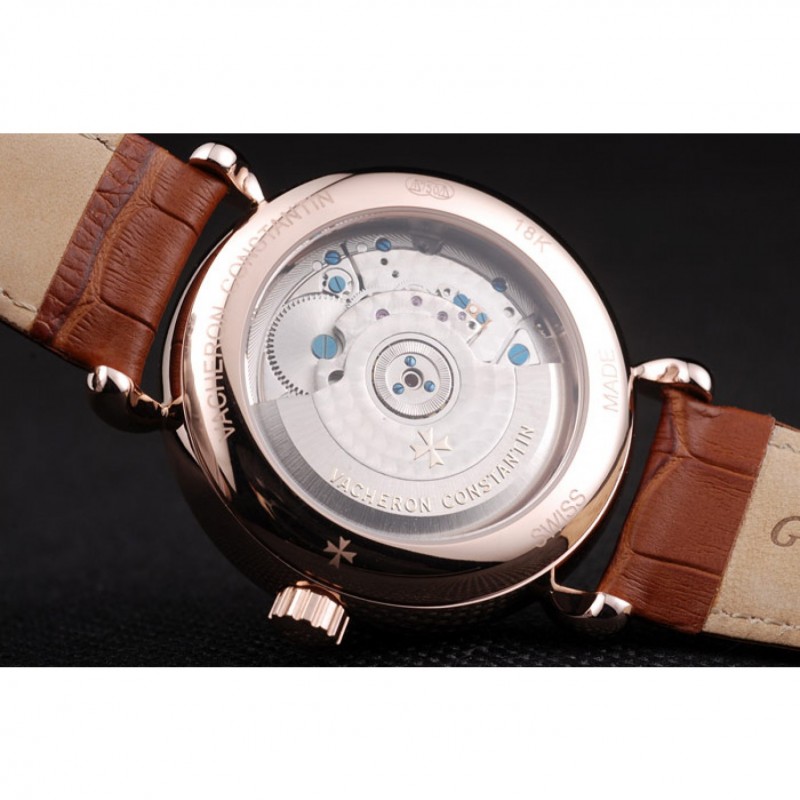 Volver: 18K rose-oro plateado complemento con grabados Vacheron Constantin y mecánicos transparentes que revelan centro