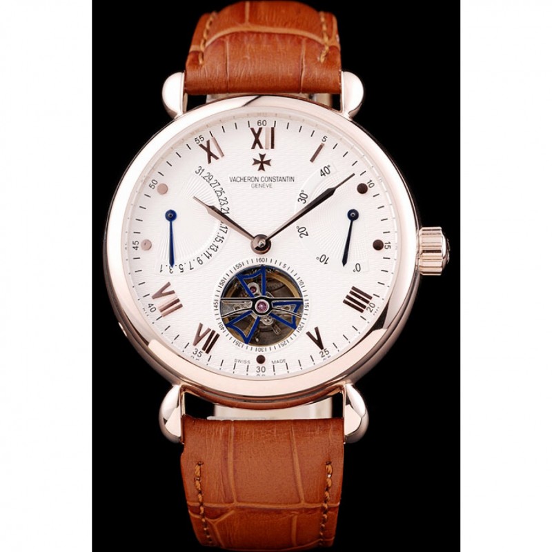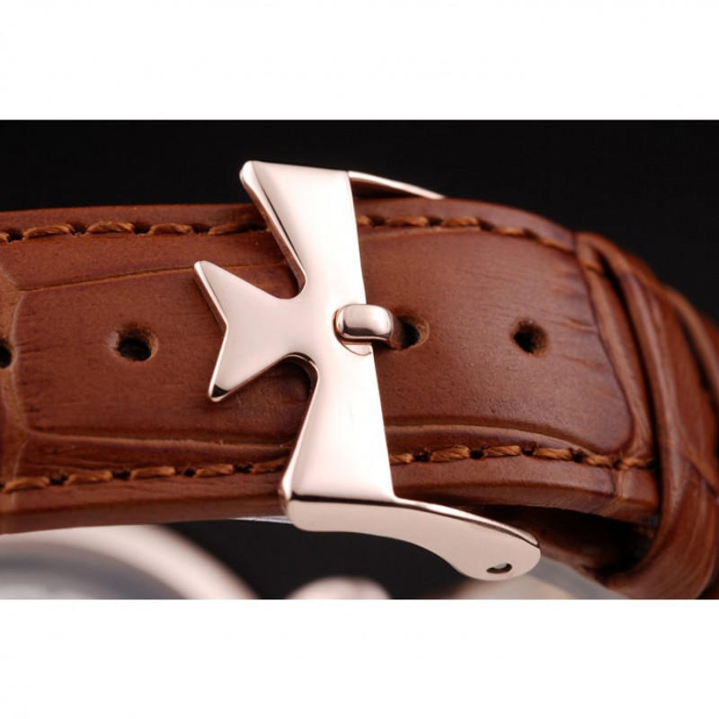 pulsera: Vacheron Constantin y correa de cuero de calor logotipo en relieve tan cocodrilo con 18K Rose-chapado en oro logo de gancho hebilla de cierre